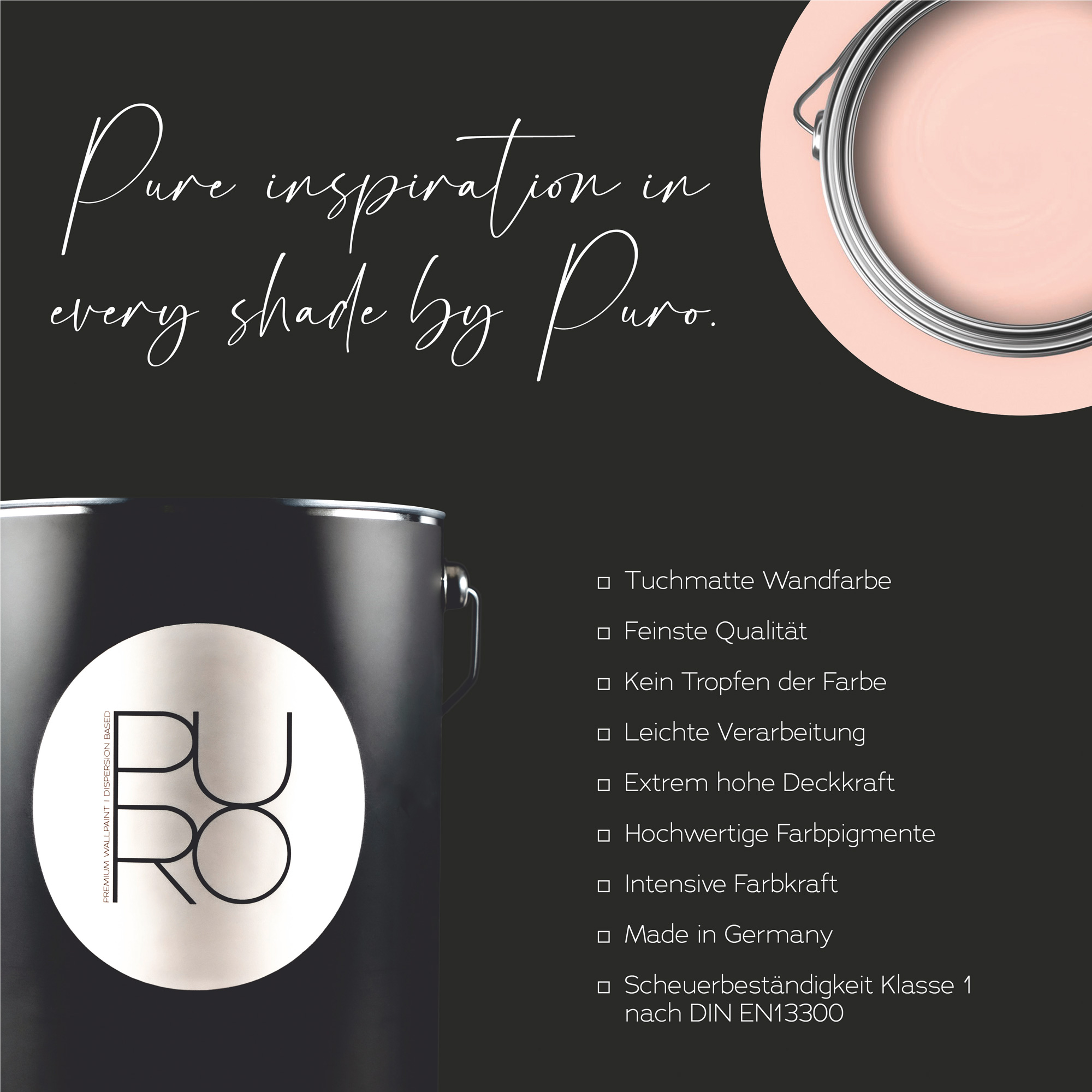 Spritzarme Wandfarbe / Dispersionsfarbe ohne Lösungsmittel mit intensiver Farbkraft (matt).