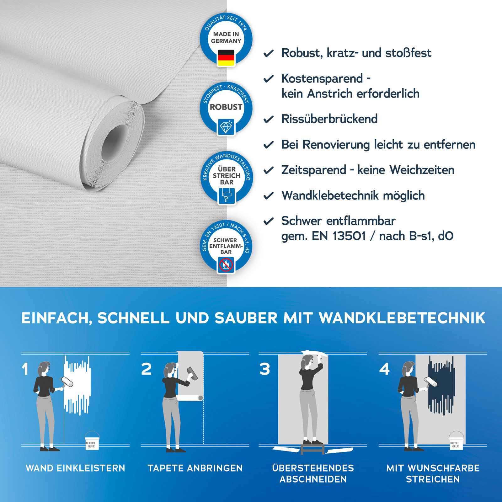 Mit der Meistervlies 8 Kollektion setzen Sie auf Qualität und Langlebigkeit. Die hochwertigen Vliestapeten sind besonders robust und langlebig. Dank der einfachen Verarbeitung und der Möglichkeit, die Tapeten mehrfach zu überstreichen, sind sie äußerst flexibel einsetzbar. Ob im Wohnbereich, im Büro oder in den eigenen vier Wänden Meistervlies 8 bietet die perfekte Lösung für jeden Raum.
