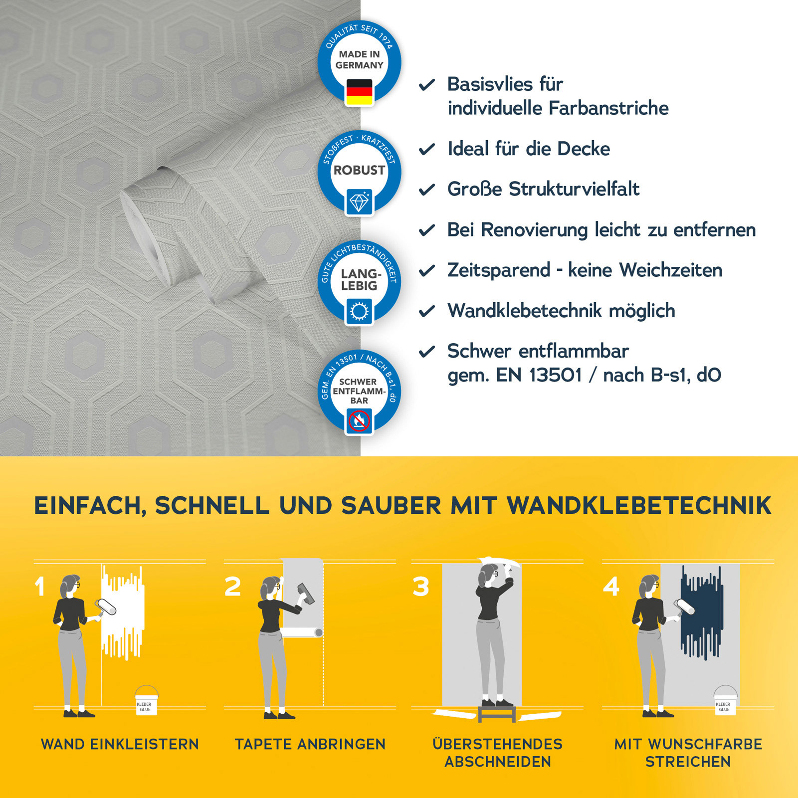 Mit der Meistervlies 8 Kollektion setzen Sie auf Qualität und Langlebigkeit. Die hochwertigen Vliestapeten sind besonders robust und langlebig. Dank der einfachen Verarbeitung und der Möglichkeit, die Tapeten mehrfach zu überstreichen, sind sie äußerst flexibel einsetzbar. Ob im Wohnbereich, im Büro oder in den eigenen vier Wänden Meistervlies 8 bietet die perfekte Lösung für jeden Raum.