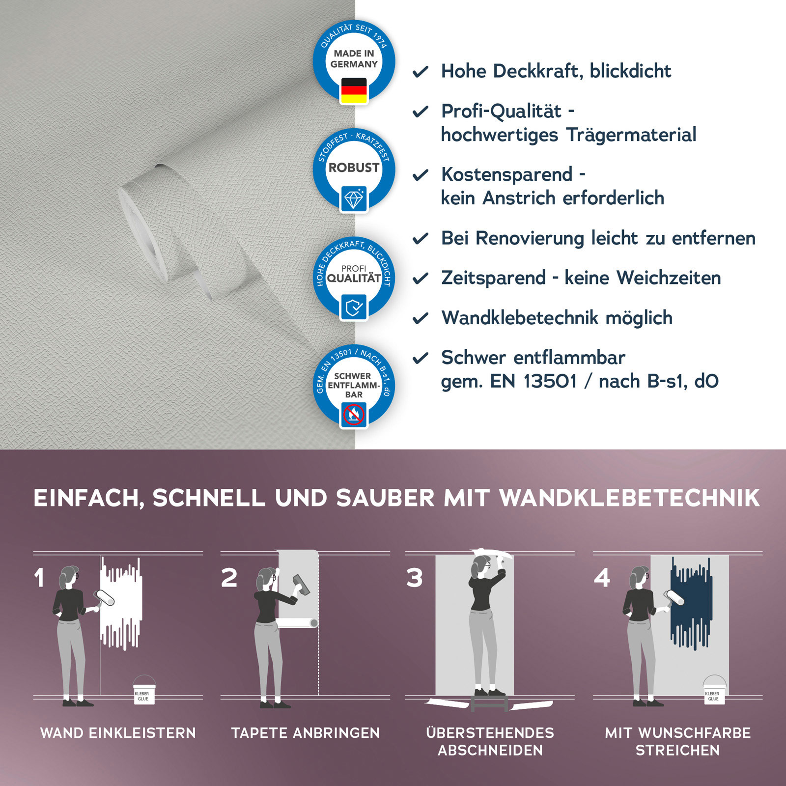 Optik und Struktur der Tapete: matt und strukturiert