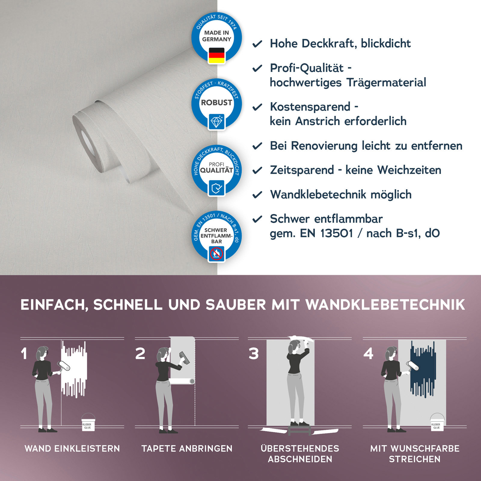 Optik und Struktur der Tapete: matt und strukturiert