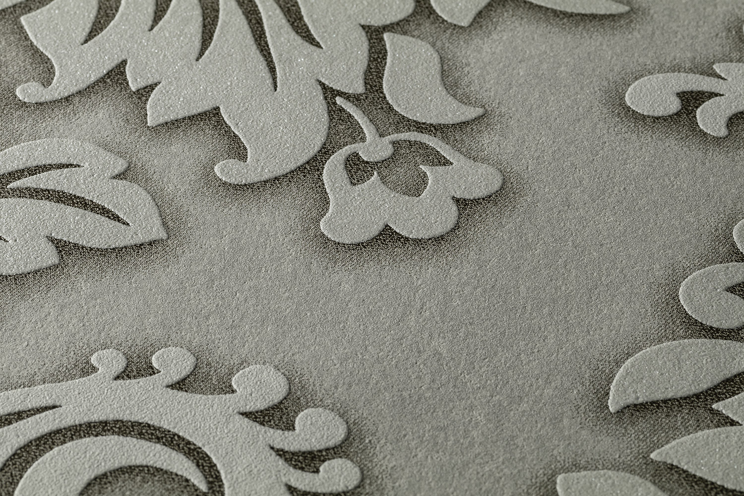 Optik und Struktur der Tapete: Muster teilweise glitzernd, Hintergrund matt und leicht strukturiert