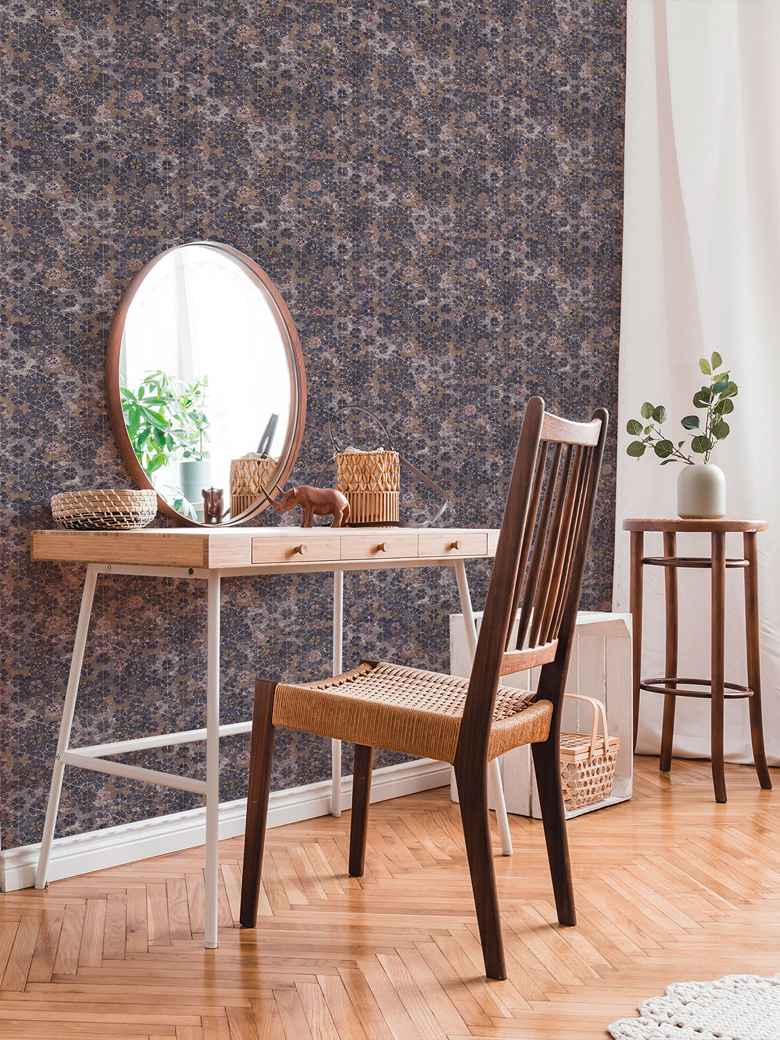 Optik und Struktur der Tapete: Muster matt, Hintergrund glänzend und leicht strukturiert