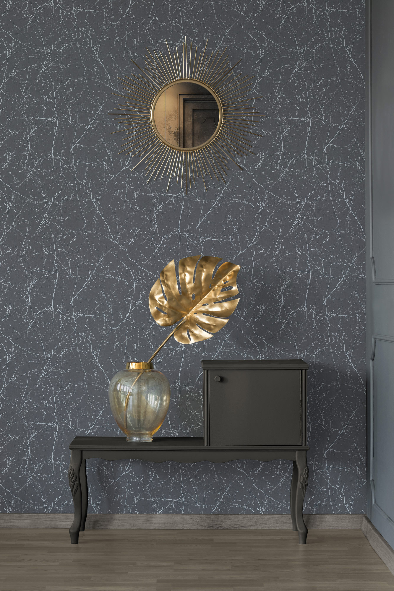 Optik und Struktur der Tapete: Muster schimmernd, Hintergrund matt und strukturiert