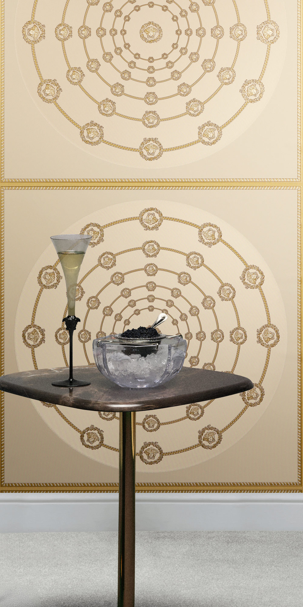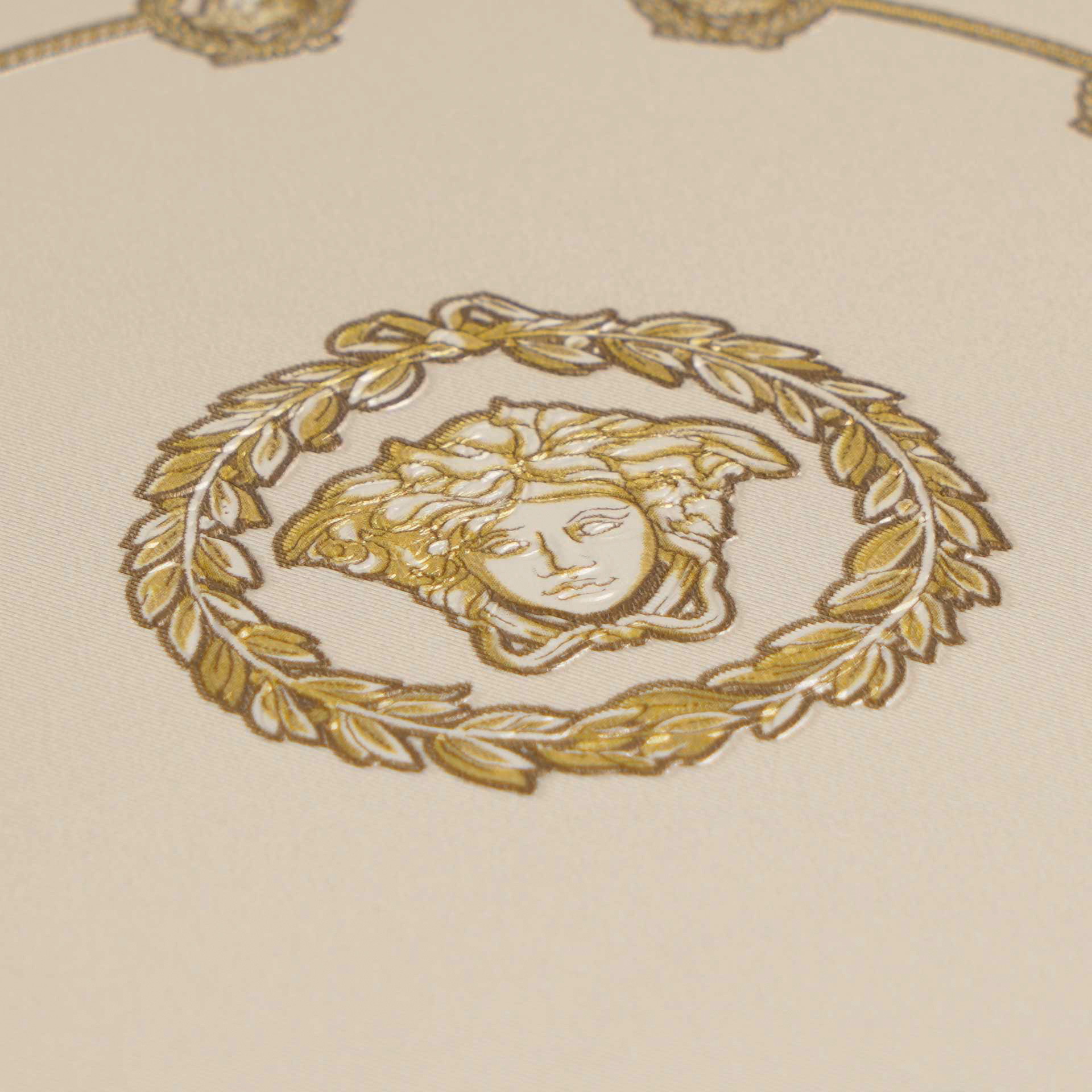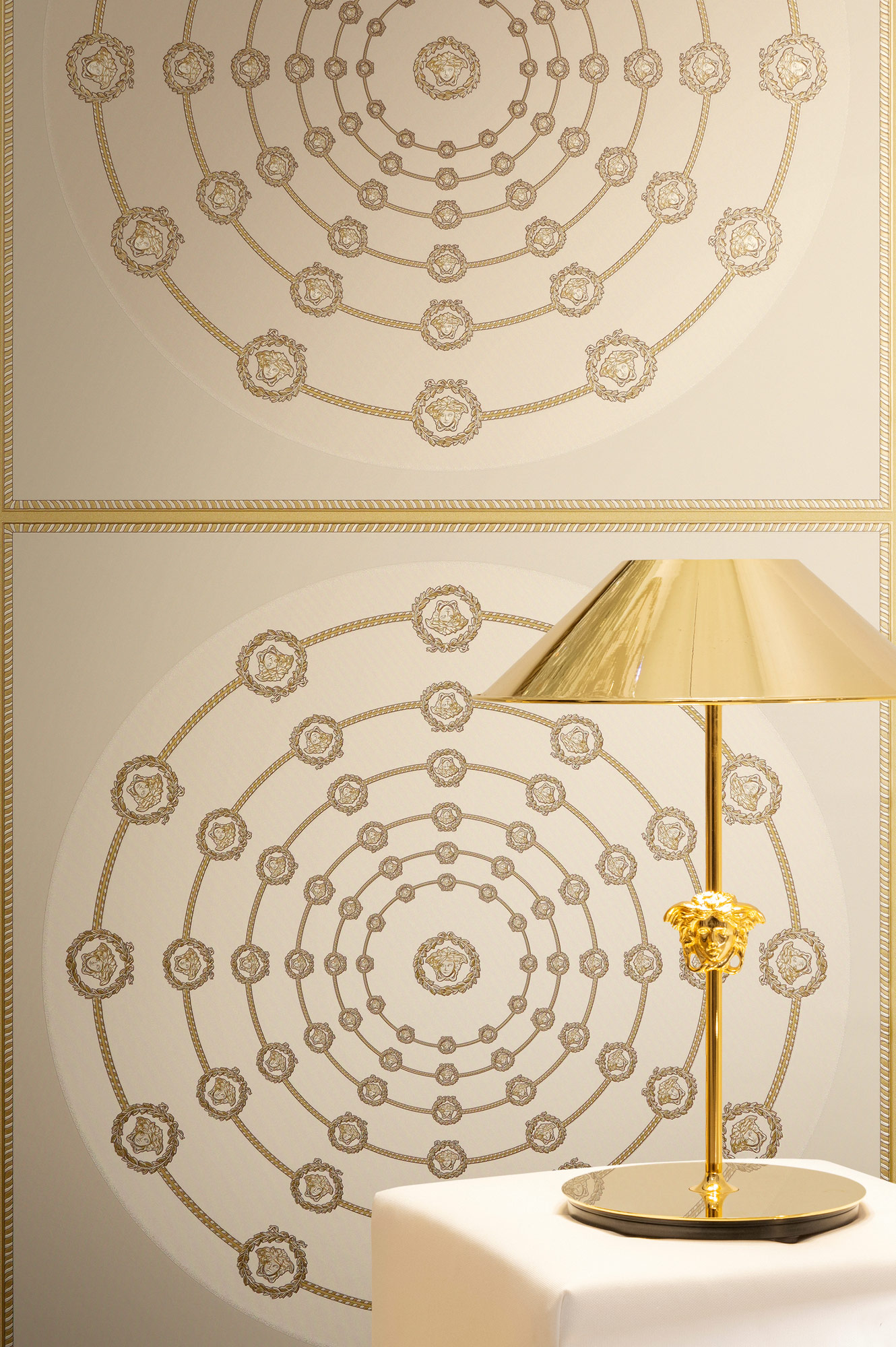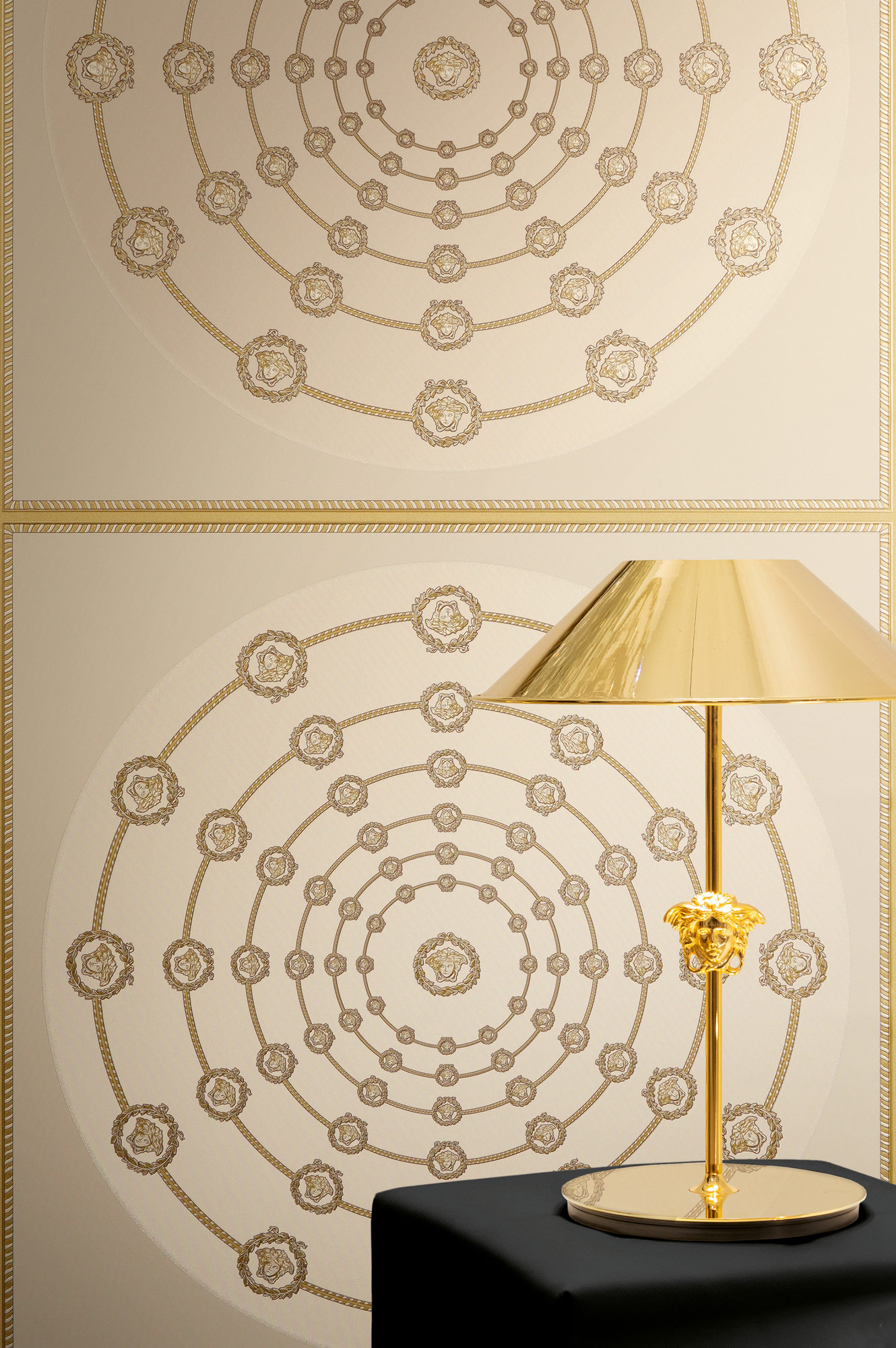 Mit ihren tiefen Goldtönen und den legendären Medusa-Motiven verströmt die Kollektion eine mystische Eleganz, die die Sinne berührt und ein Gefühl von zeitloser Erhabenheit und Glamour weckt. Jede Bahn ist ein leidenschaftliches Bekenntnis zu Extravaganz und Stil, das Ihr Zuhause in eine Bühne für Ihre eigene, glanzvolle Persönlichkeit verwandelt.