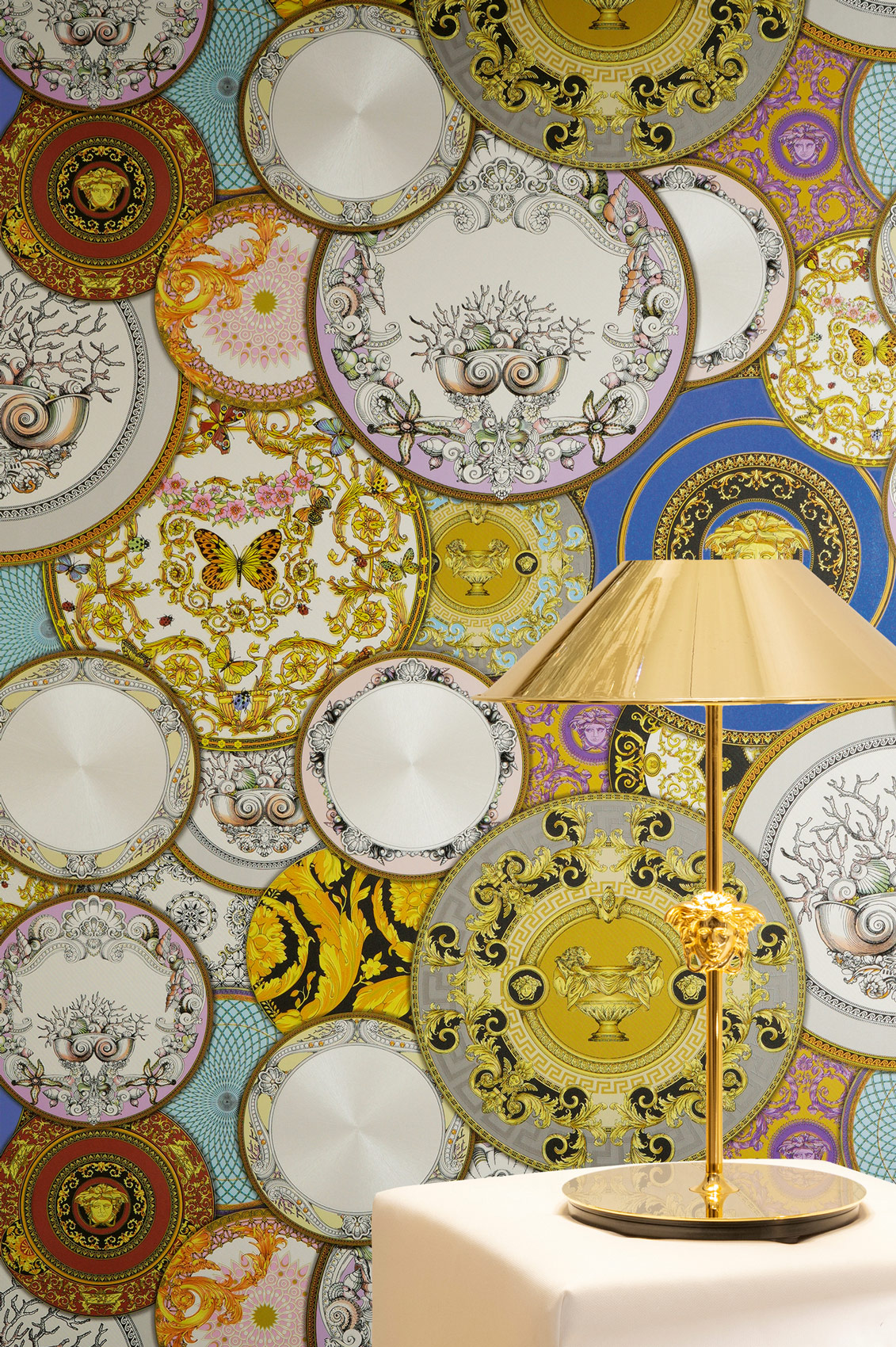 Mit ihren tiefen Goldtönen und den legendären Medusa-Motiven verströmt die Kollektion eine mystische Eleganz, die die Sinne berührt und ein Gefühl von zeitloser Erhabenheit und Glamour weckt. Jede Bahn ist ein leidenschaftliches Bekenntnis zu Extravaganz und Stil, das Ihr Zuhause in eine Bühne für Ihre eigene, glanzvolle Persönlichkeit verwandelt.
