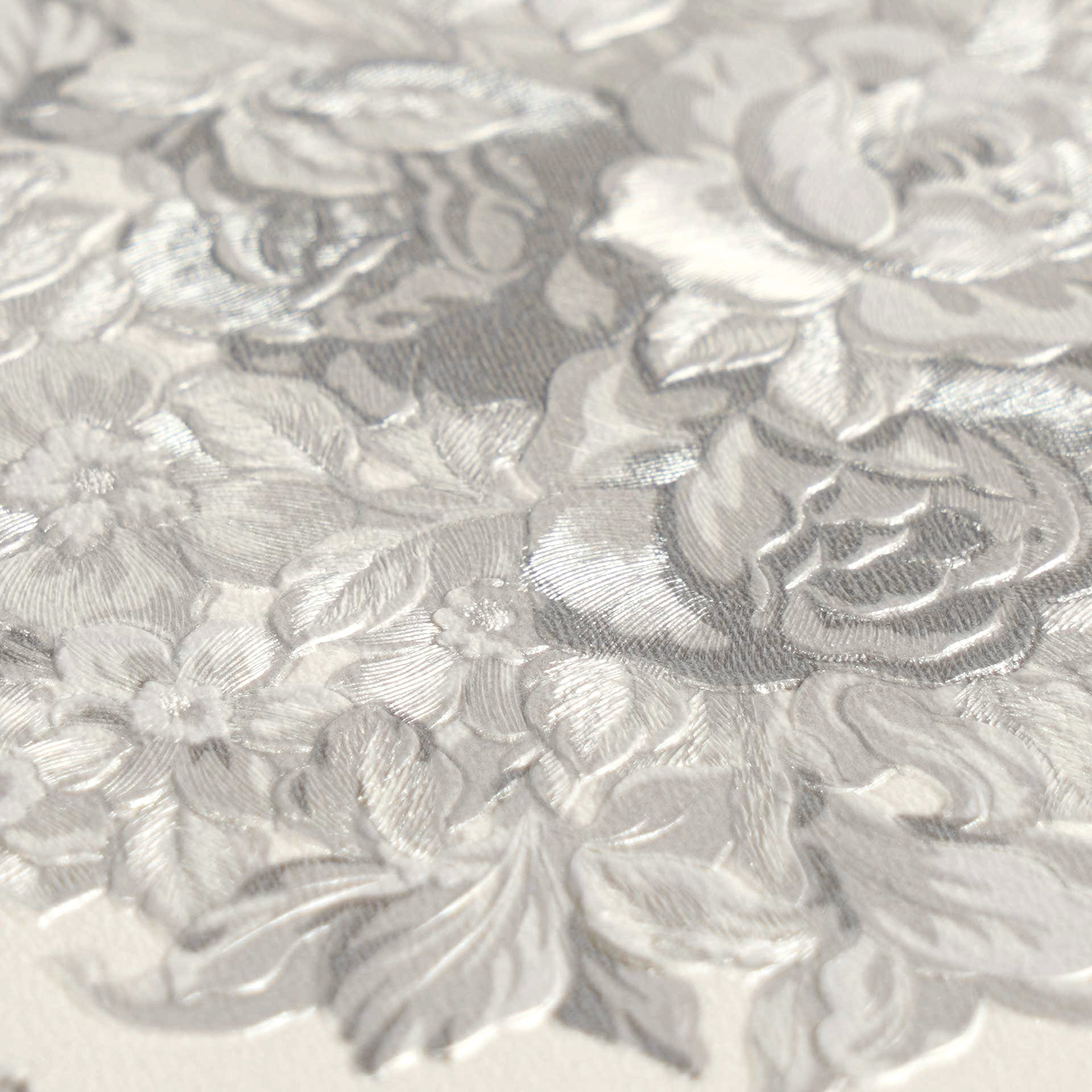 Optik und Struktur der Tapete: leicht glänzend und Hintergrund glatt, Muster strukturiert