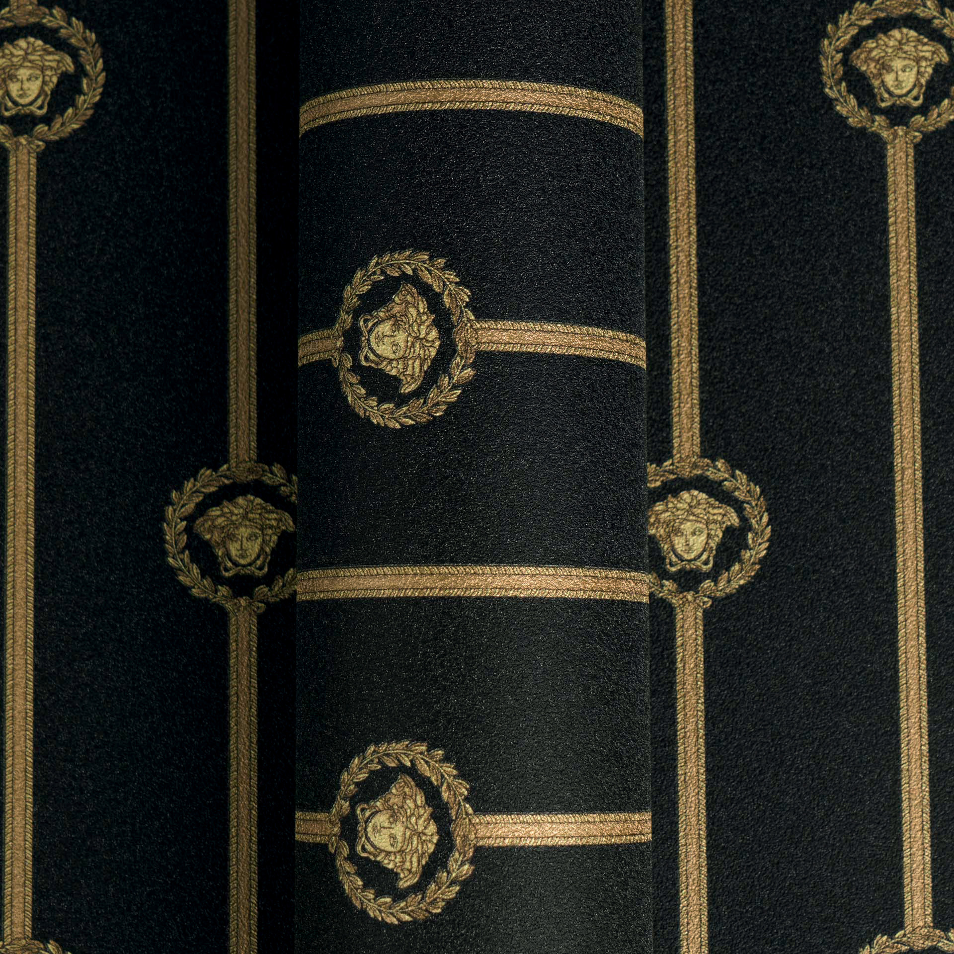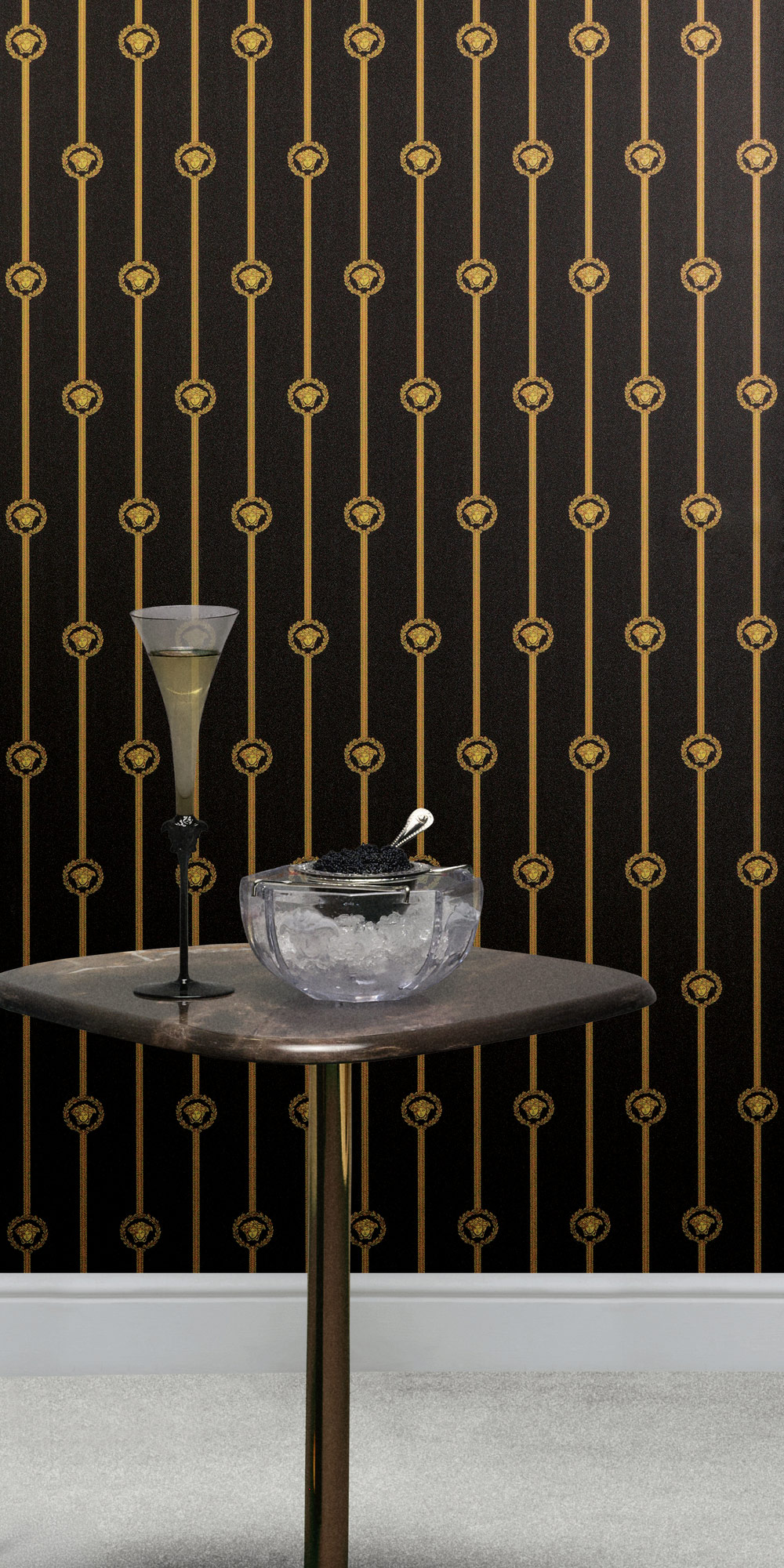 Mit ihren tiefen Goldtönen und den legendären Medusa-Motiven verströmt die Kollektion eine mystische Eleganz, die die Sinne berührt und ein Gefühl von zeitloser Erhabenheit und Glamour weckt. Jede Bahn ist ein leidenschaftliches Bekenntnis zu Extravaganz und Stil, das Ihr Zuhause in eine Bühne für Ihre eigene, glanzvolle Persönlichkeit verwandelt.