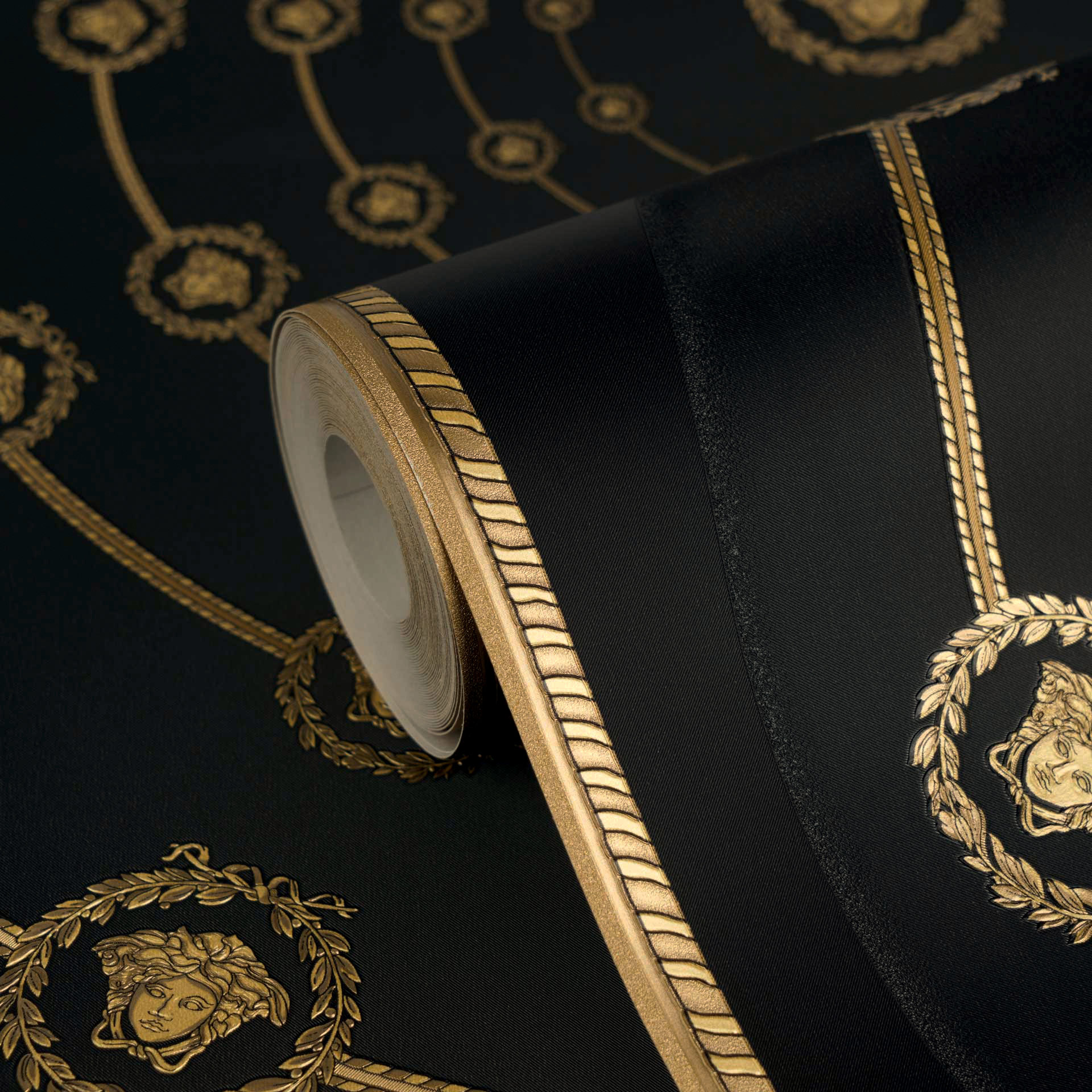 Mit ihren tiefen Goldtönen und den legendären Medusa-Motiven verströmt die Kollektion eine mystische Eleganz, die die Sinne berührt und ein Gefühl von zeitloser Erhabenheit und Glamour weckt. Jede Bahn ist ein leidenschaftliches Bekenntnis zu Extravaganz und Stil, das Ihr Zuhause in eine Bühne für Ihre eigene, glanzvolle Persönlichkeit verwandelt.