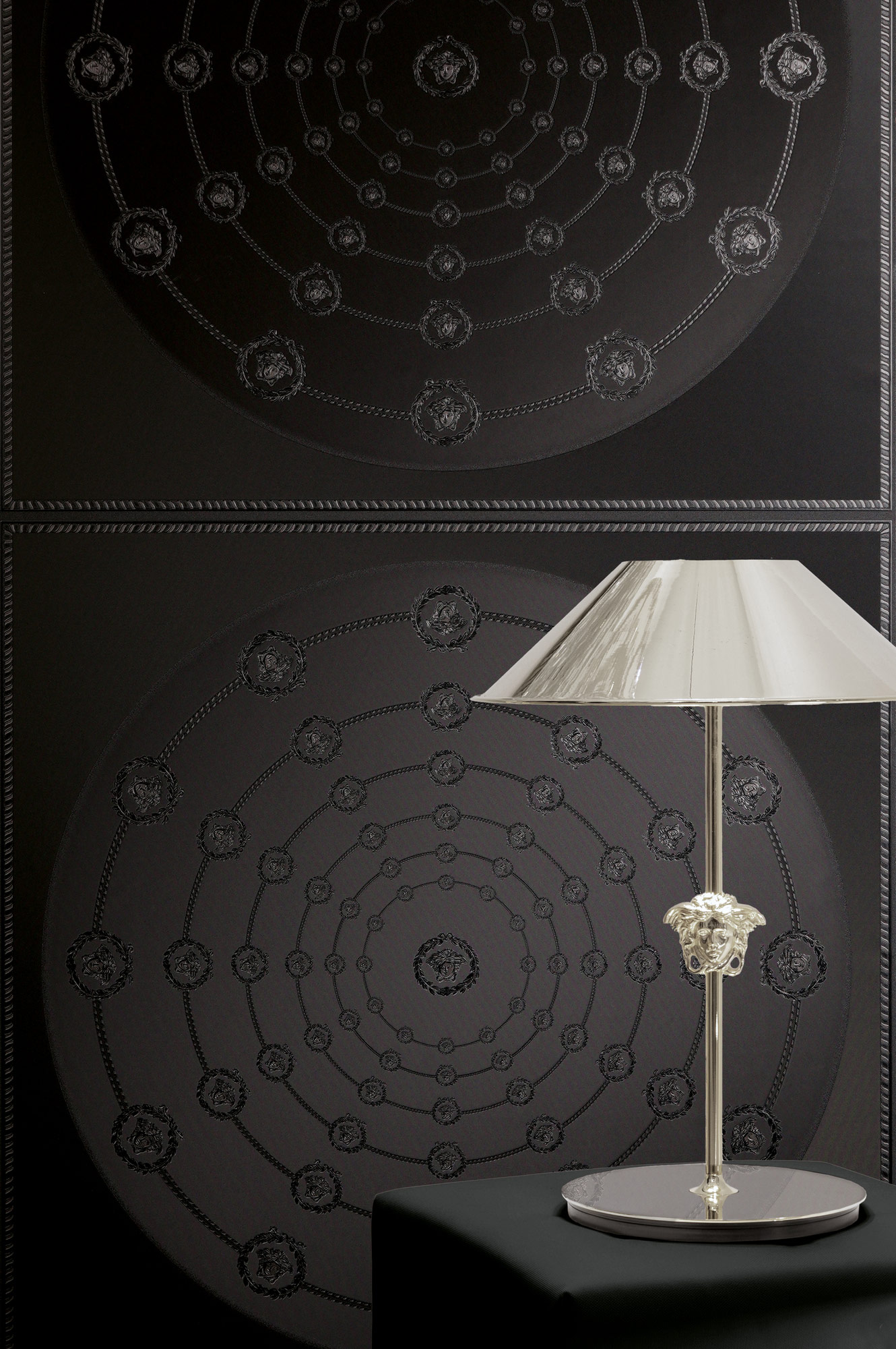 Mit ihren tiefen Goldtönen und den legendären Medusa-Motiven verströmt die Kollektion eine mystische Eleganz, die die Sinne berührt und ein Gefühl von zeitloser Erhabenheit und Glamour weckt. Jede Bahn ist ein leidenschaftliches Bekenntnis zu Extravaganz und Stil, das Ihr Zuhause in eine Bühne für Ihre eigene, glanzvolle Persönlichkeit verwandelt.