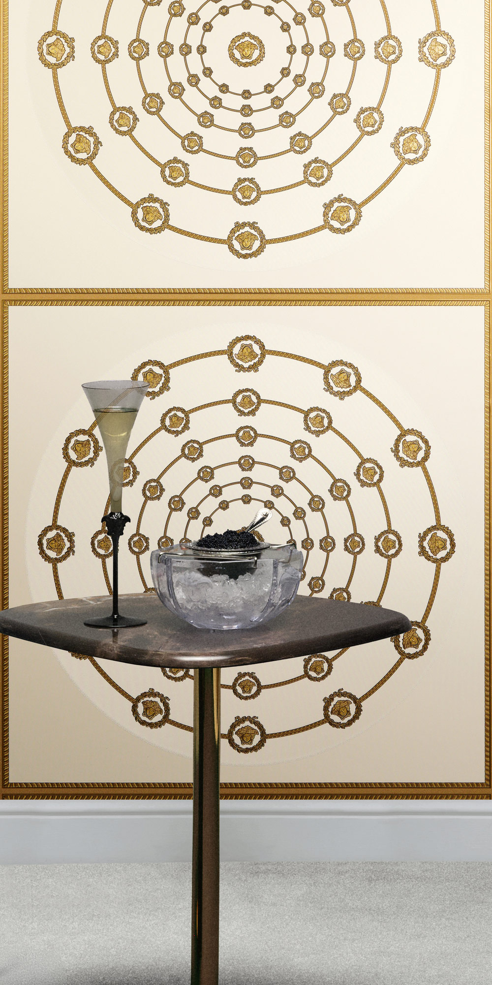 Mit ihren tiefen Goldtönen und den legendären Medusa-Motiven verströmt die Kollektion eine mystische Eleganz, die die Sinne berührt und ein Gefühl von zeitloser Erhabenheit und Glamour weckt. Jede Bahn ist ein leidenschaftliches Bekenntnis zu Extravaganz und Stil, das Ihr Zuhause in eine Bühne für Ihre eigene, glanzvolle Persönlichkeit verwandelt.