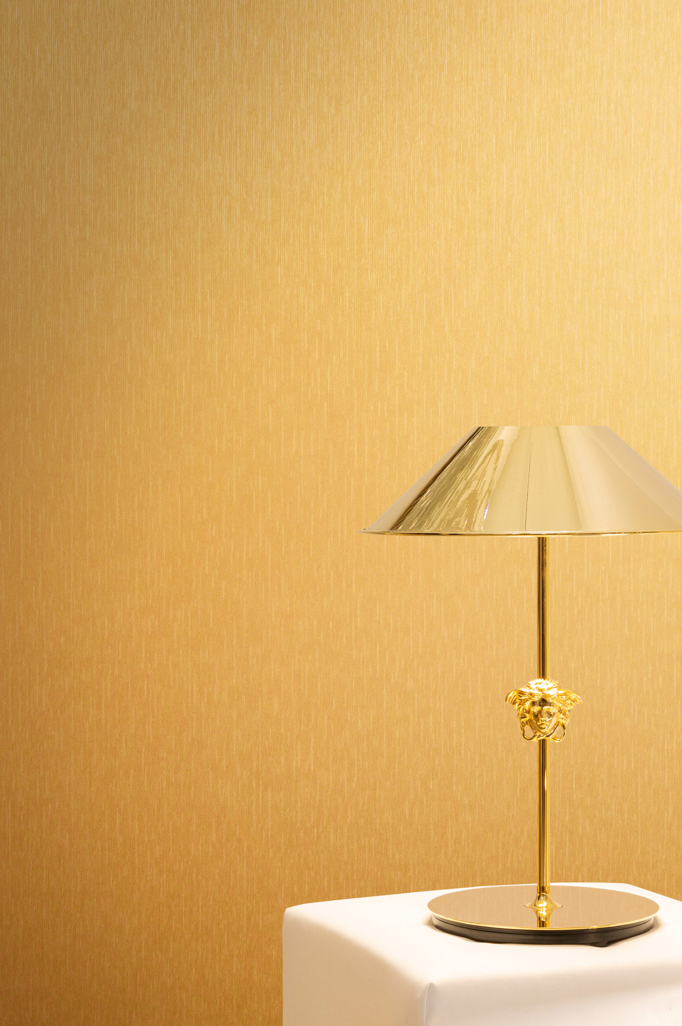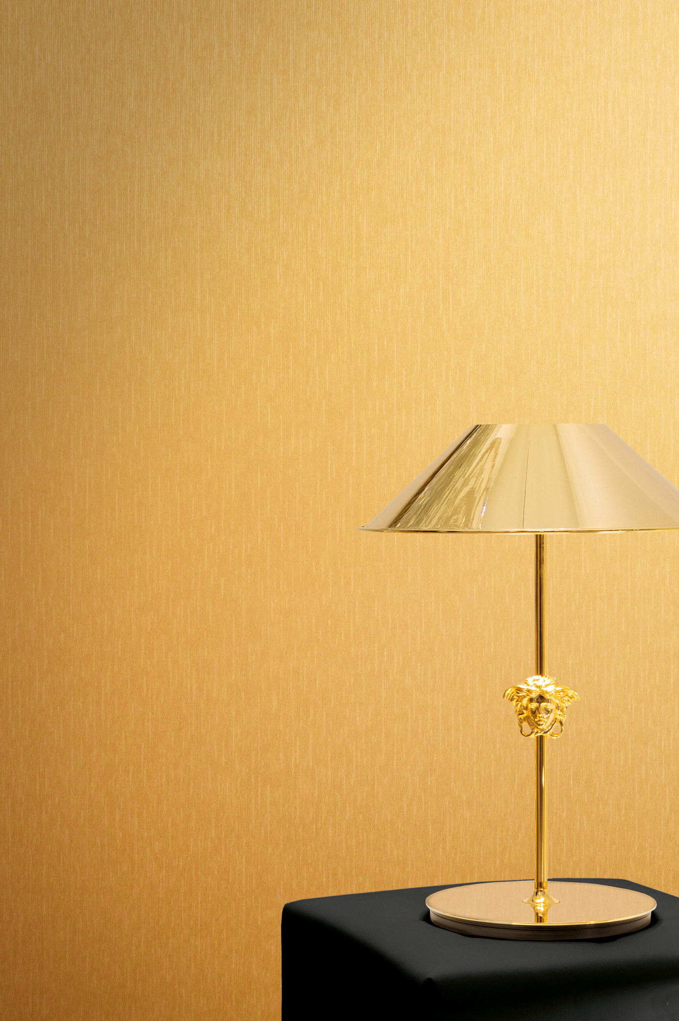 Mit ihren tiefen Goldtönen und den legendären Medusa-Motiven verströmt die Kollektion eine mystische Eleganz, die die Sinne berührt und ein Gefühl von zeitloser Erhabenheit und Glamour weckt. Jede Bahn ist ein leidenschaftliches Bekenntnis zu Extravaganz und Stil, das Ihr Zuhause in eine Bühne für Ihre eigene, glanzvolle Persönlichkeit verwandelt.