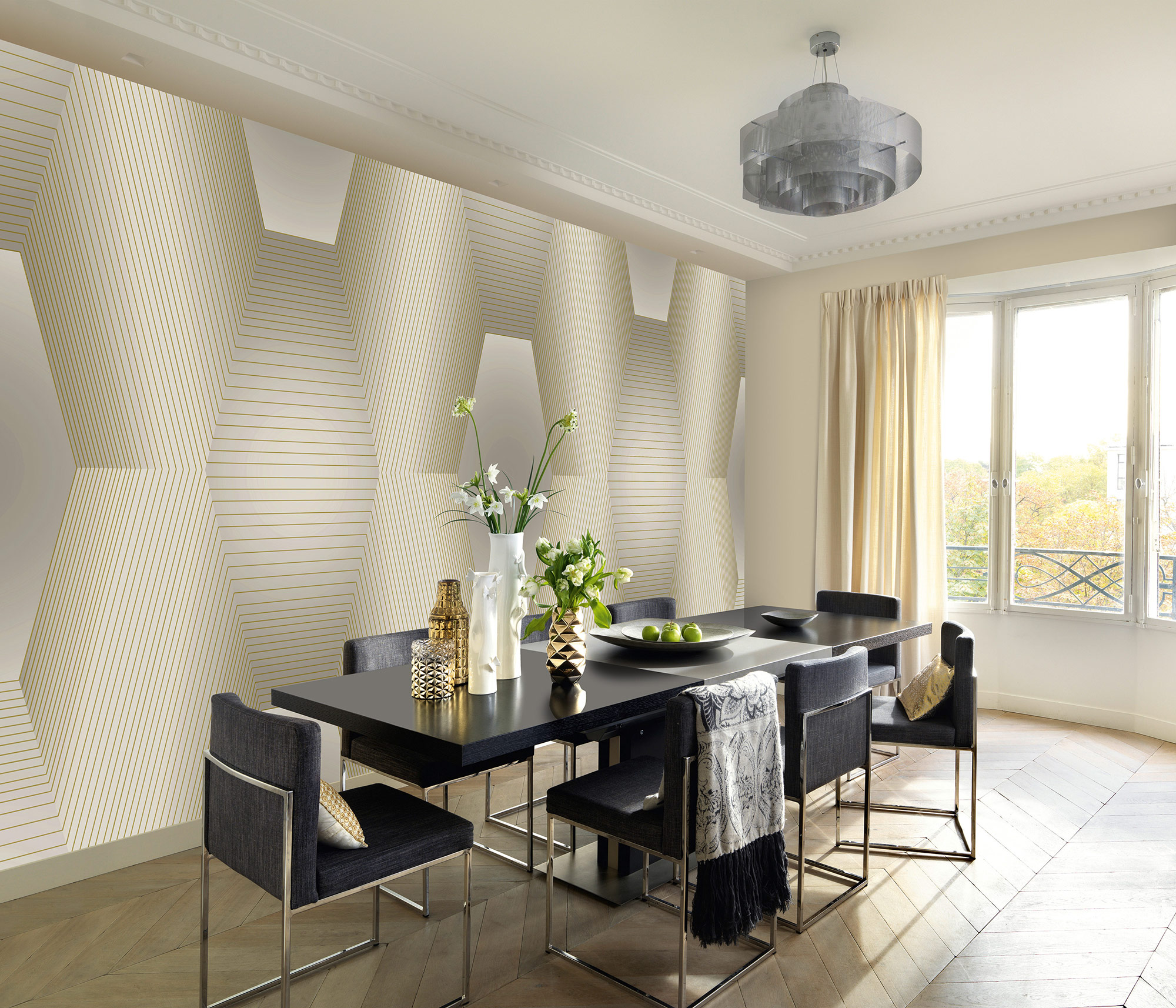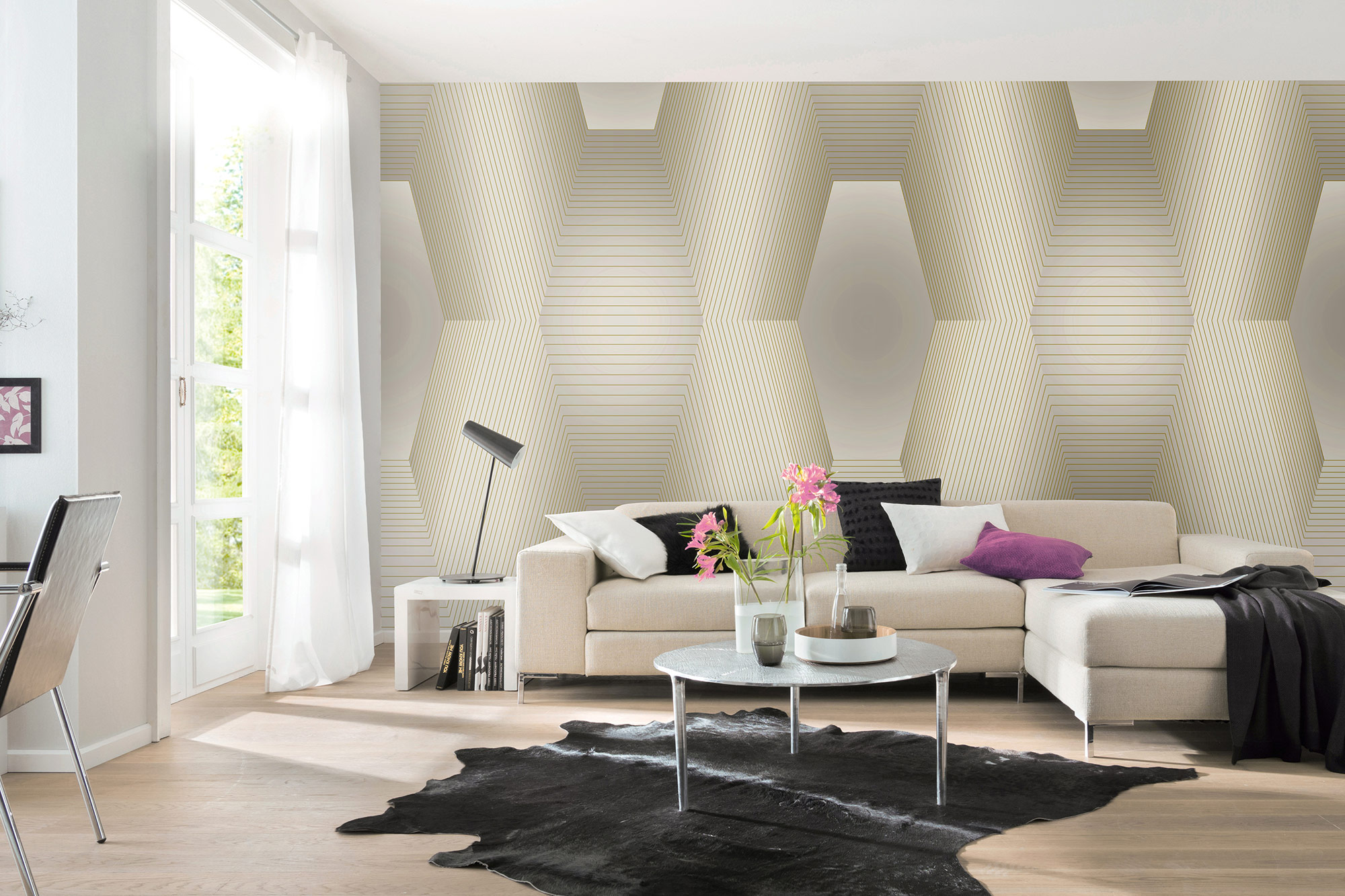 Klassisch, zeitlos und dennoch extrem modern - die Fotowand ORION kombiniert luxuriöse Farben mit klaren Linien in Metallic-Optik und einer ausdrucksstarken Grafik im 3D-Look. Durch den Matt-Glanzeffekt erzeugt das Design eine Intensität, die jede Wand zu einem Eye-Catcher macht.