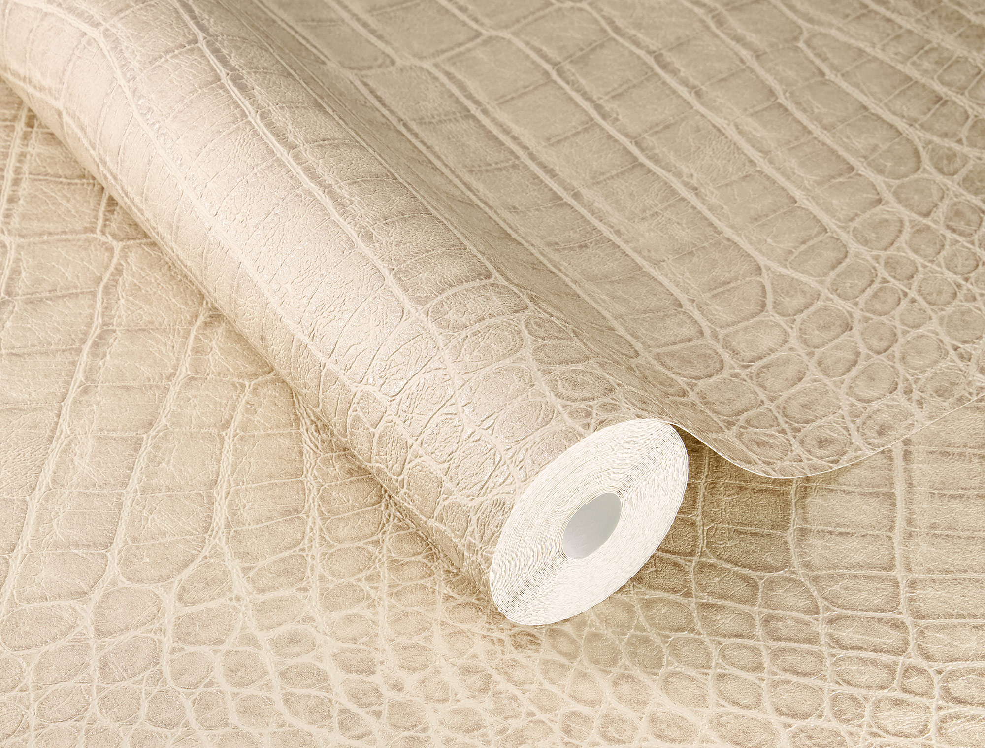 Obwohl kein Krokodil für diese atemberaubende Vliestapete in Beige seinen Platz im Wasser verlassen musste, ziert von nun an ein phantastisches Krokodilleder das Zuhause. Dank einer perfekten Nachahmung des besonderen Schuppenpanzers entsteht so ein fabelhaftes Muster an der Wand und verleiht jedem Raum Eleganz, Individualität und einen Hauch Exotik.