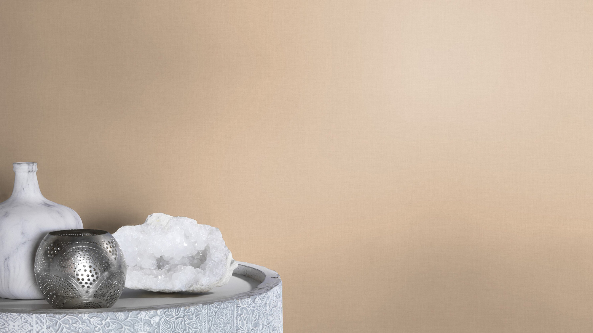 Schön einfach und einfach schön: Um Wohlfühlatmosphäre zu zaubern, braucht man gar nicht viel. Ein warmes Beige und eine natürliche Textilstruktur können eine Menge im Raum bewirken. Toll, um einzelne Wände hervorzuheben oder in Kombination mit einem farblich abgestimmten Muster. Einfach ausprobieren.