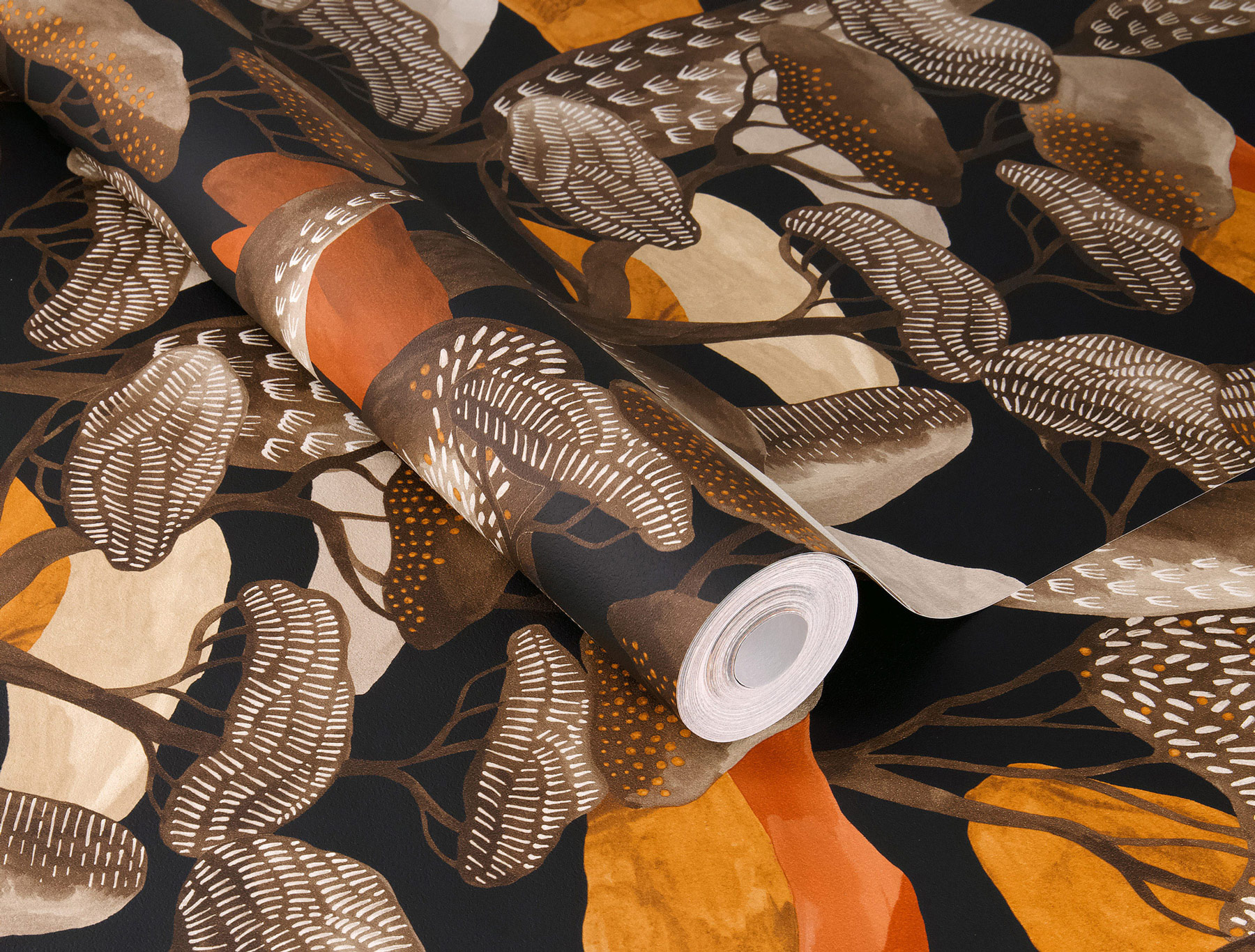 Willkommen in Wald und Flur! Doch auch im Schlafzimmer oder im Wohnzimmer darf sich das Naturmotiv gerne ausbreiten. Das Braun-Orange der stilisierten Baumlandschaft hat eine spektakuläre Wirkung. Und durch die verschiedenen Schattierungen ergeben sich spannende Effekte. Freundlich wird es durch helle Lichtpunkte, die überall hervorblitzen. Ein Look, der sich an kleineren Akzentwänden hervorragend macht und für viel Aufmerksamkeit sorgt.