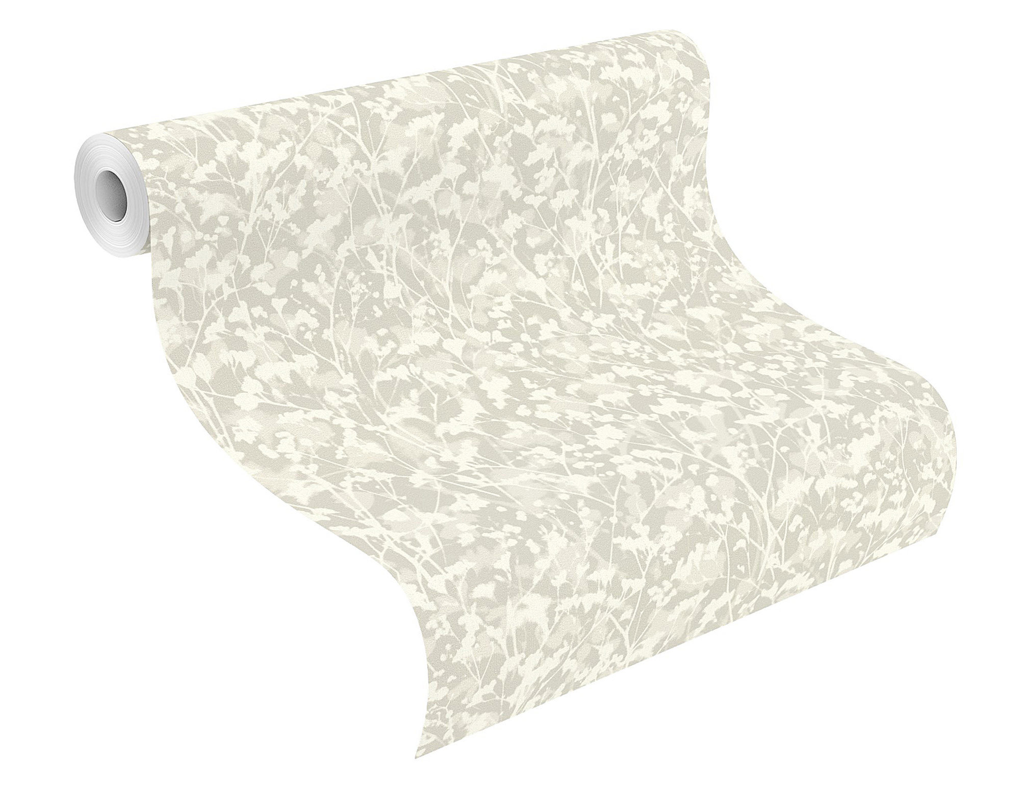Backstage: Vornehme Zurückhaltung ist ziemlich angesagt. Und ein florales Muster eignet sich gut, um ganz dezent für ein modernes Wohnambiente zu sorgen. Dank eines zarten Schimmers ist dieses hellgraue Tapetendesign glänzend aufgelegt und lässt die weißen Zweige charmant durchscheinen. Das Ergebnis: ein frischer, natürlicher Look, der zu etlichen Wohnstilen passt.