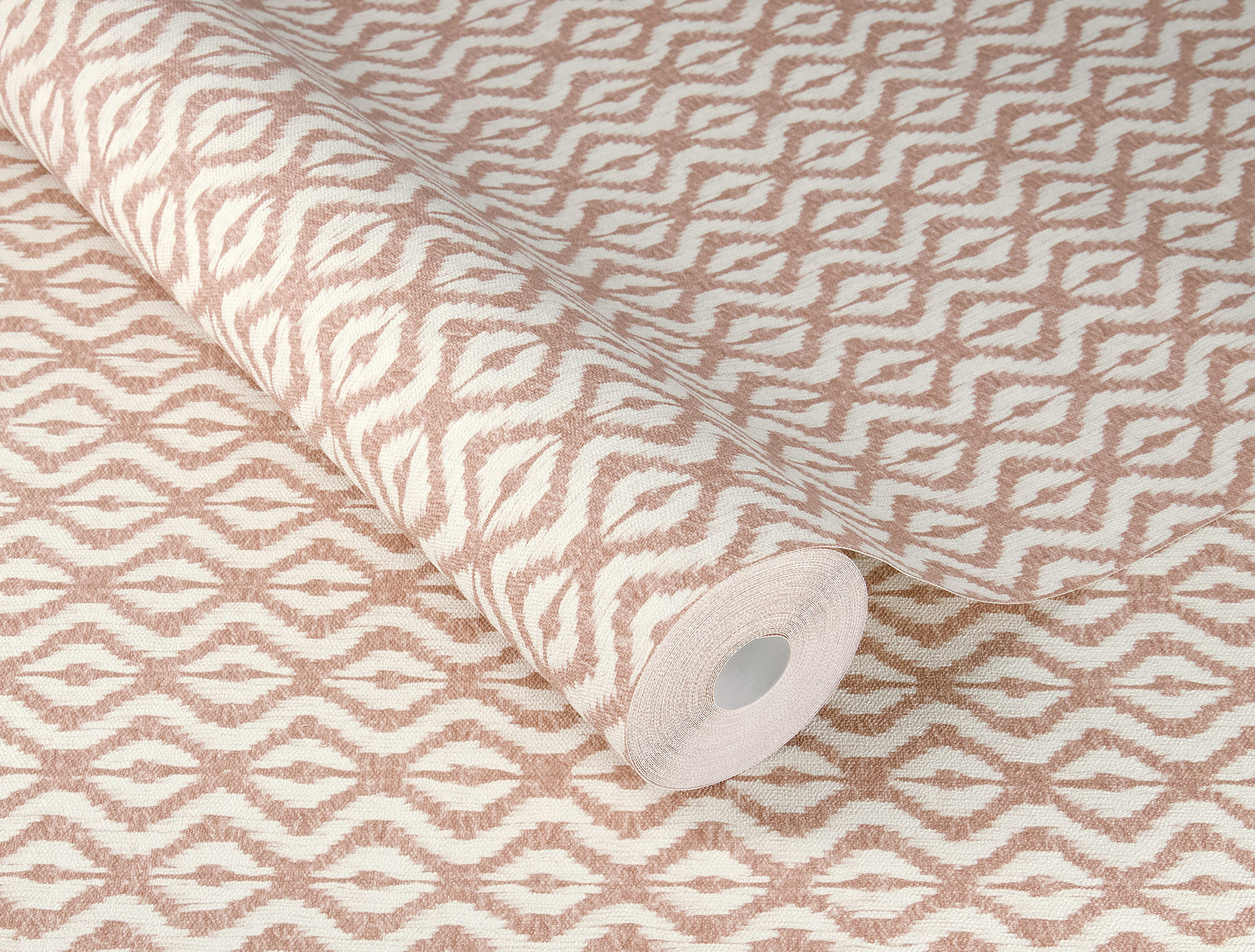 Bienvenido! Das Ikat-Muster gehört zum mediterranen Lebensgefühl einfach dazu. Als Teppich oder Kissen hat es zuhause längst seinen festen Stammplatz ? doch nun dürfen sich auch unsere Wände auf das geometrische Webmuster mit der weichen Haptik freuen. In rosé-weißen Zick-Zack-Linien ist das Design eine charmante Ergänzung zu jeder Einrichtung. Kreativ und einzigartig erhält die Lieblingsecke so einen individuellen Touch, inklusive Urlaubsfeeling.