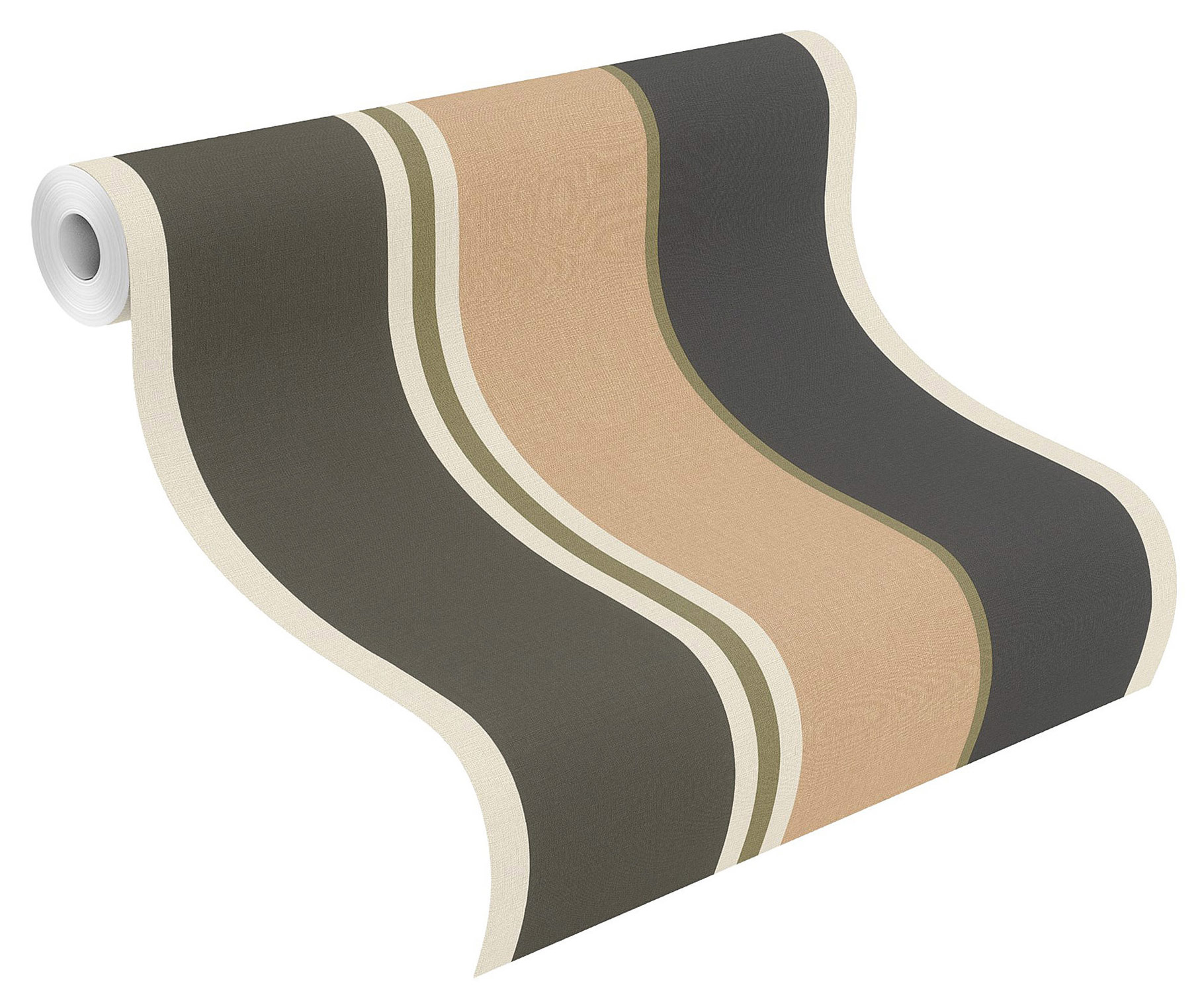 Metallic ist Trend. Doch aufgepasst, hier ist weniger mehr. Darum kombinieren wir helle Goldstreifen mit einem geradlinigen Muster und schwarz-grün-beigefarbenen Streifen. Wände werden so nicht nur zum schimmernden Eyecatcher, sondern auch optisch verlängert, wow!