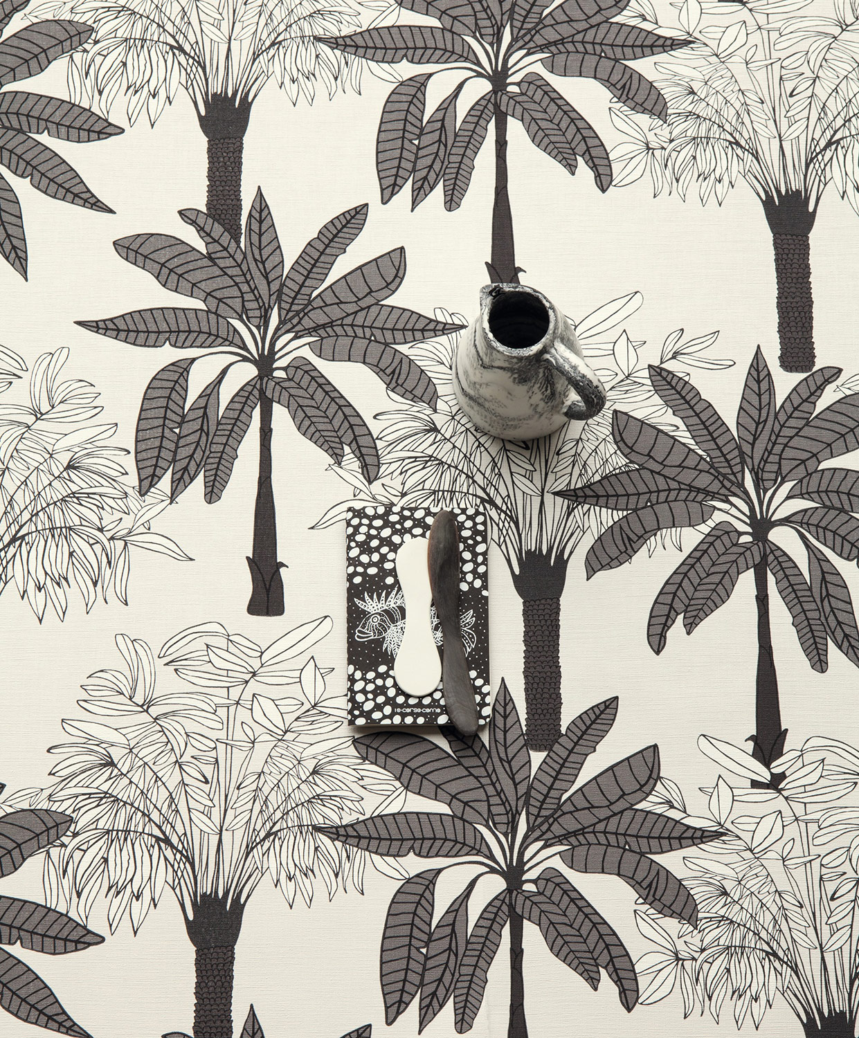 Skandinavisches Wohndesign kann auch wunderbar mit tropischen Palmengewächsen kombiniert werden. Und die dezenten Nuancen lassen das hygge-Gefühl garantiert schnell einziehen. Dunkelgrau und Weiß, dazu ein heller Sandton im Hintergrund, fertig ist ein freundlich-frischer Wandlook.
