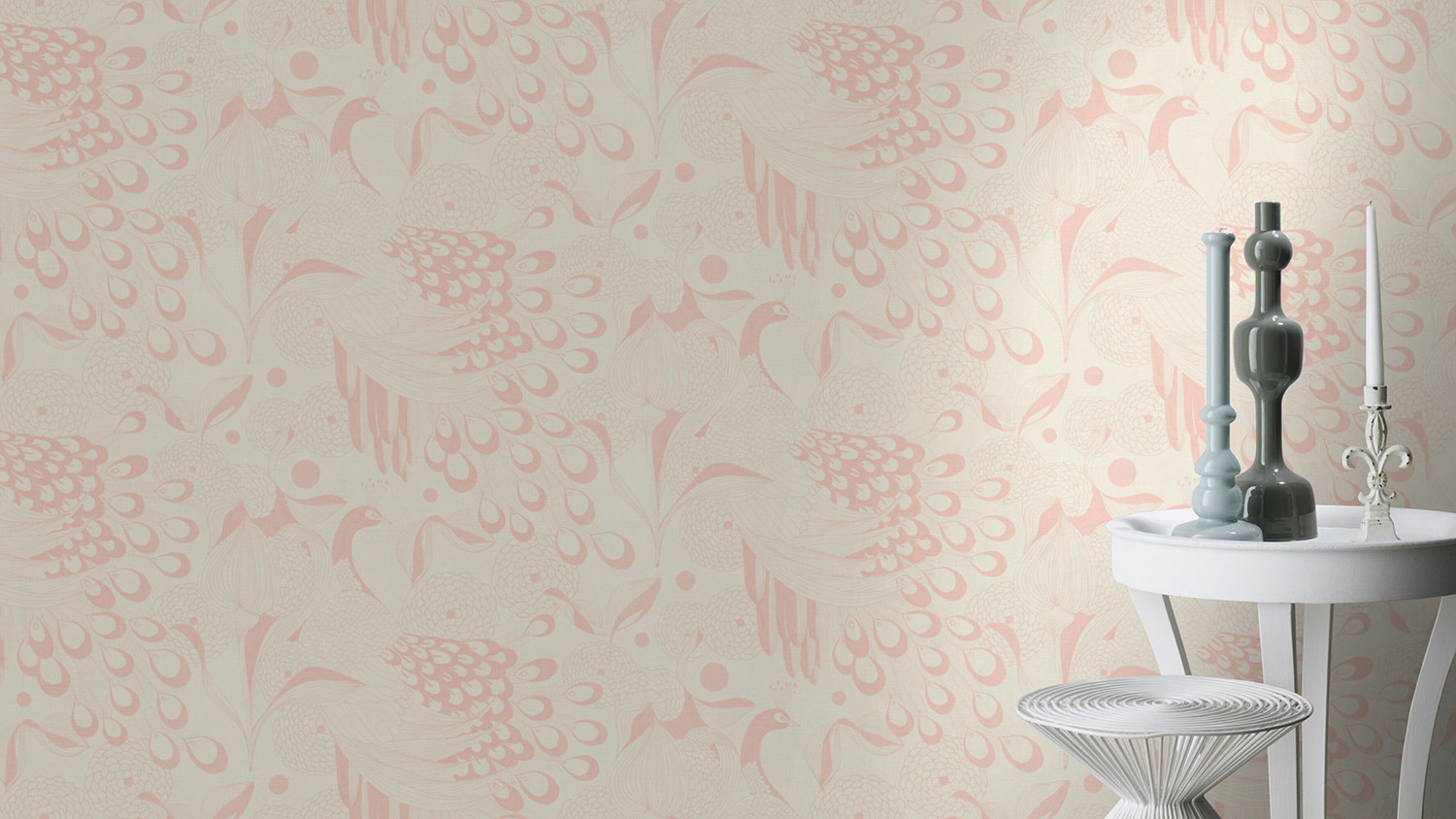 Höchste Zeit, sich mit neuen Federn zu schmücken. Die geben in zartem Puderrosa ein elegantes Statement auf dem hellen Hintergrund ab. Dadurch entsteht ein lebendiges, abwechslungsreiches Bild, das uns ganz beschwingt durch den Tag begleitet.