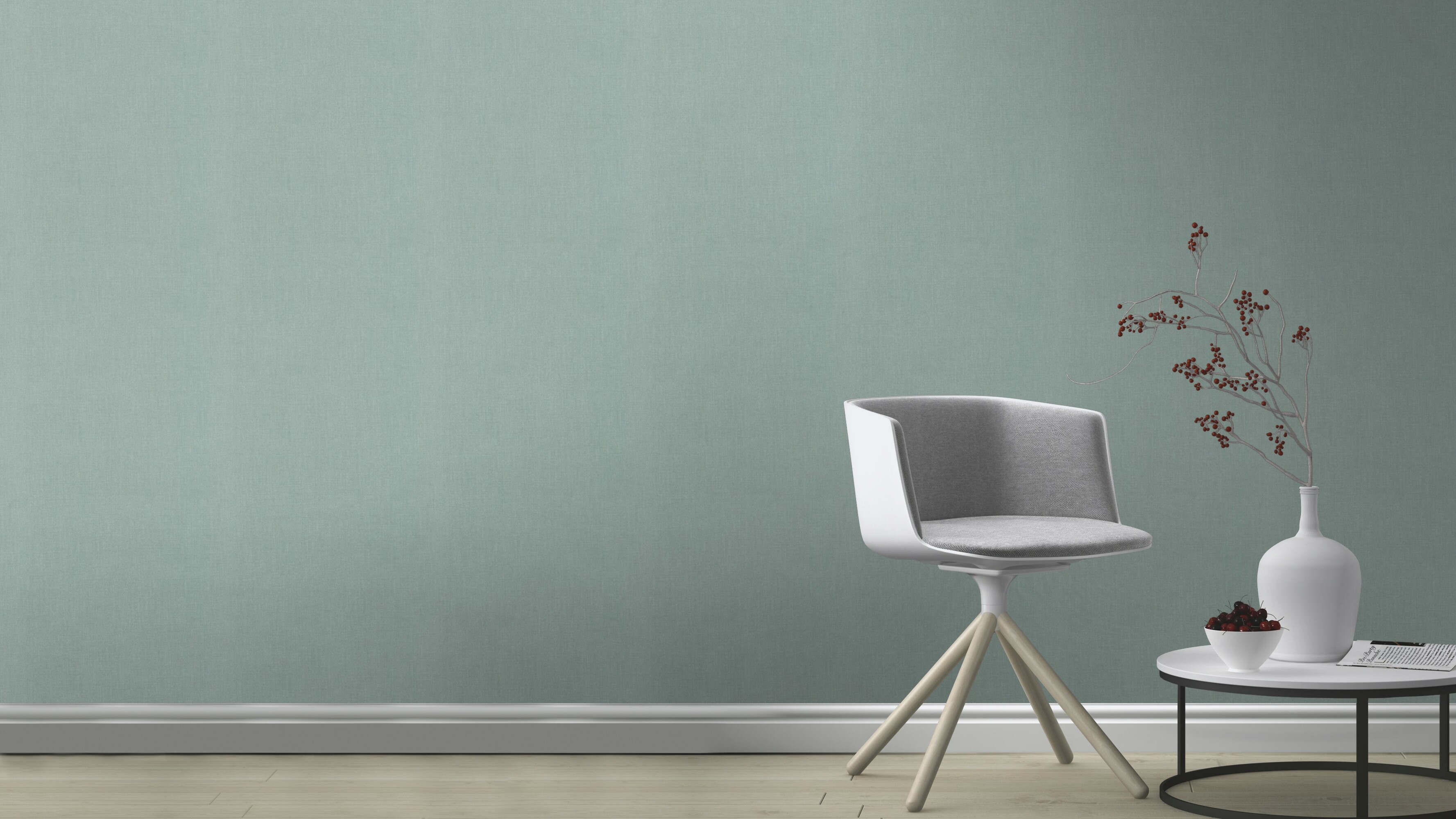 Um sein Zuhause neu einzukleiden, setzt man am besten auf Stoffoptiken. Und gut angezogen ist jede Wand mit feinem Leinen. Diese Vliestapete in hellem Türkisgrün lässt mit ihrer Textilstruktur den Raum lebendig aussehen und verleiht ihm so einen natürlich schönen und wohnlichen Look.