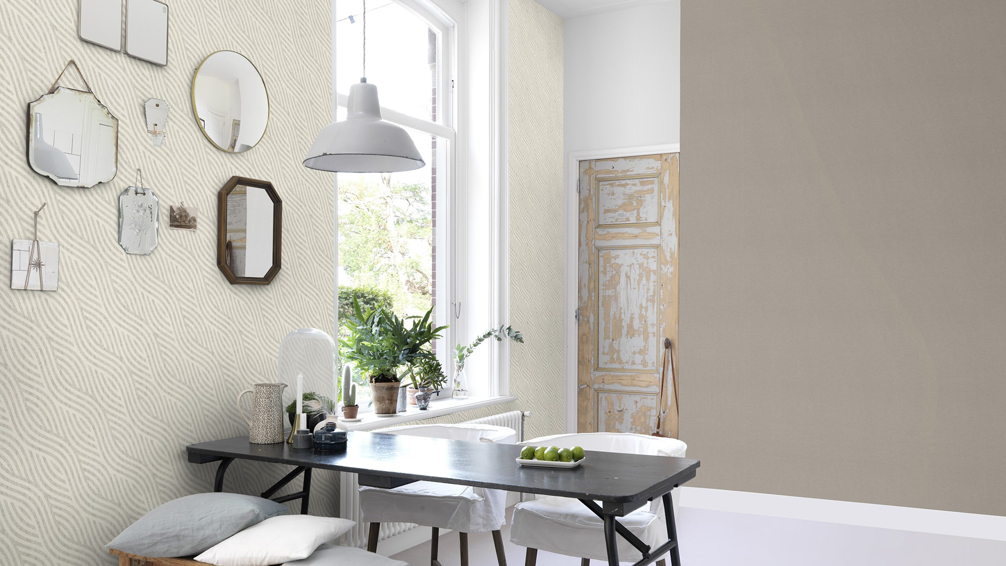 Ob zu Holz, Beton, hellen Tönen oder leuchtenden Trend-Farben: Naturtöne passen sich jedem Wohnstil an. Diese Tapete zeigt sich in einem Schlammton, das Wärme und Behaglichkeit ausstrahlt, aber mit seiner feinen Textilstruktur trotzdem schick rüberkommt.