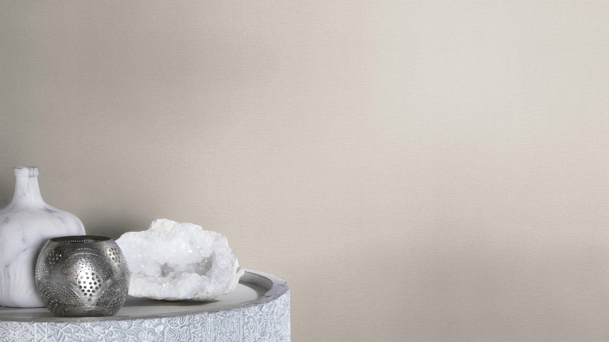 Ob zu Holz, Beton, hellen Tönen oder leuchtenden Trend-Farben: Naturtöne passen sich jedem Wohnstil an. Diese Tapete zeigt sich in hellem Grau-Braun, das Wärme und Behaglichkeit ausstrahlt, aber mit seiner feinen Textilstruktur trotzdem schick rüberkommt.
