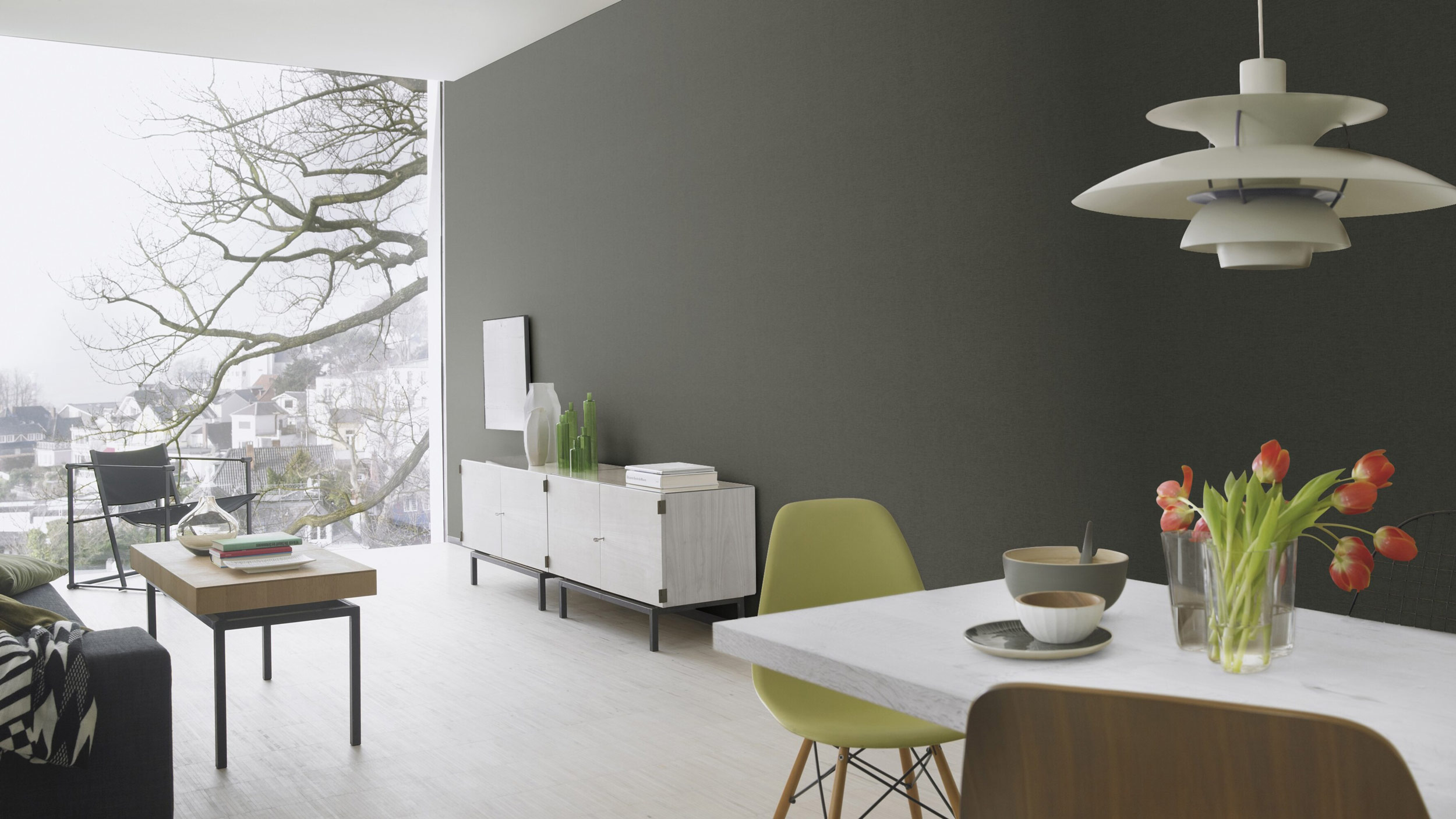 Durch ihre natürliche, textile Struktur sorgt diese Unitapete garantiert für ein erhabenes Wohngefühl. Ein sattes Kohlschwarz verleiht dabei pure Eleganz und lässt sich außerdem mit vielen Nuancen und Mustern kombinieren.