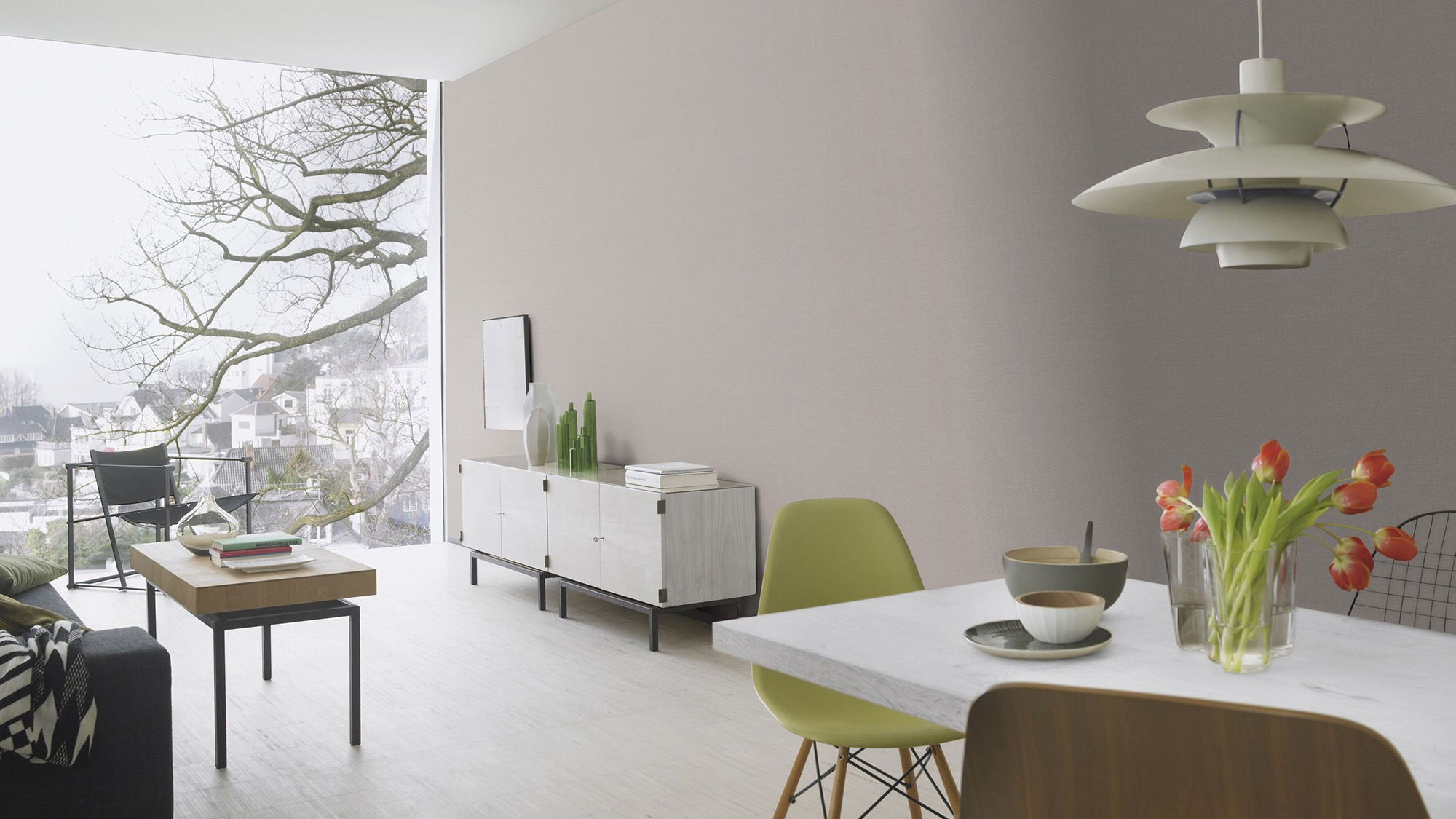 Kleidsam: Die textile Struktur der mittelgrauen Vliestapete steht jedem Raum gut zu Gesicht.
