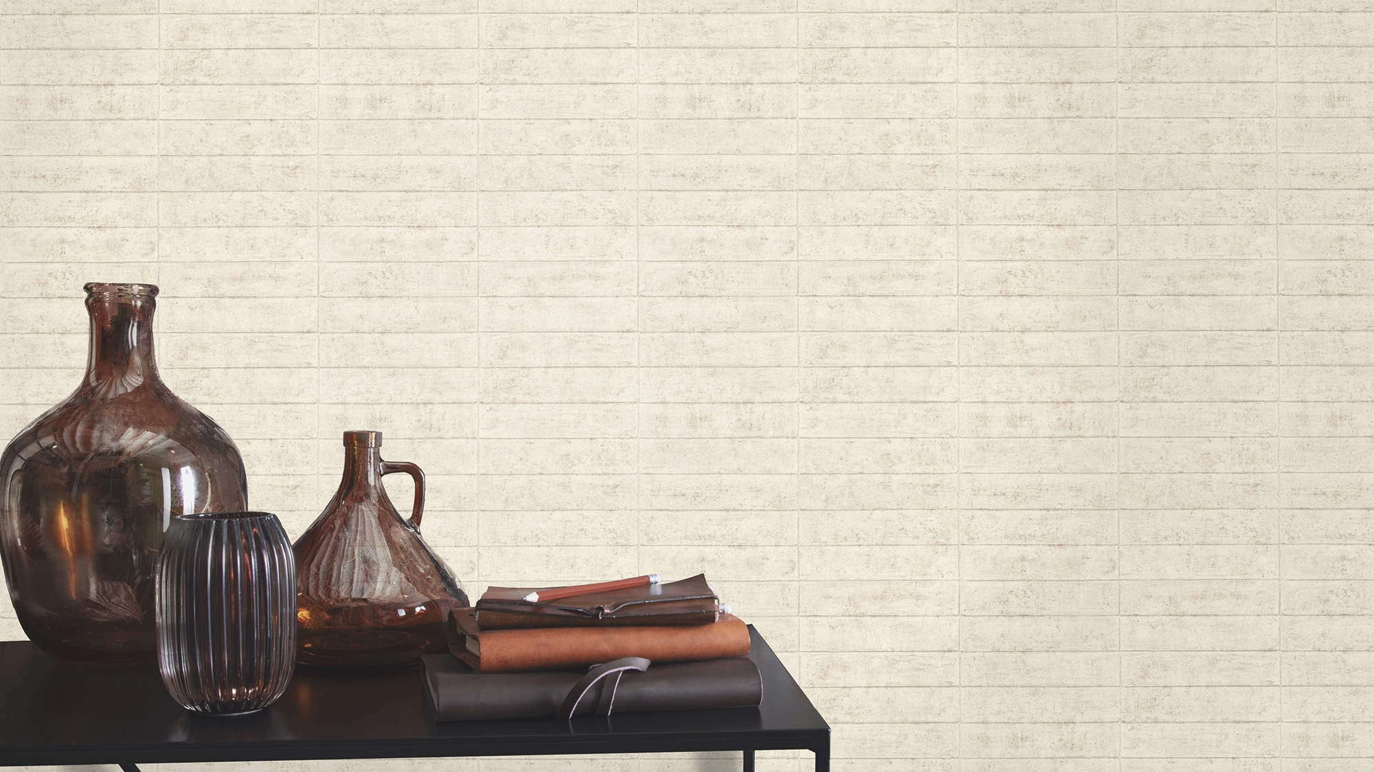 Lust auf etwas anderes? Kein Problem. Diese schmalen Betonsteine wurden gerade übereinander verarbeitet. Und da es sich hier um eine Vliestapete in hellem Beige handelt, braucht man sich zum einen keine Gedanken über die Stabilität machen und auch nicht darauf warten, dass der Mörtel trocken wird. Schnell an der Wand angebracht und schon hat man einen raffinierten Blickfang, der auch noch täuschend echt aussieht.