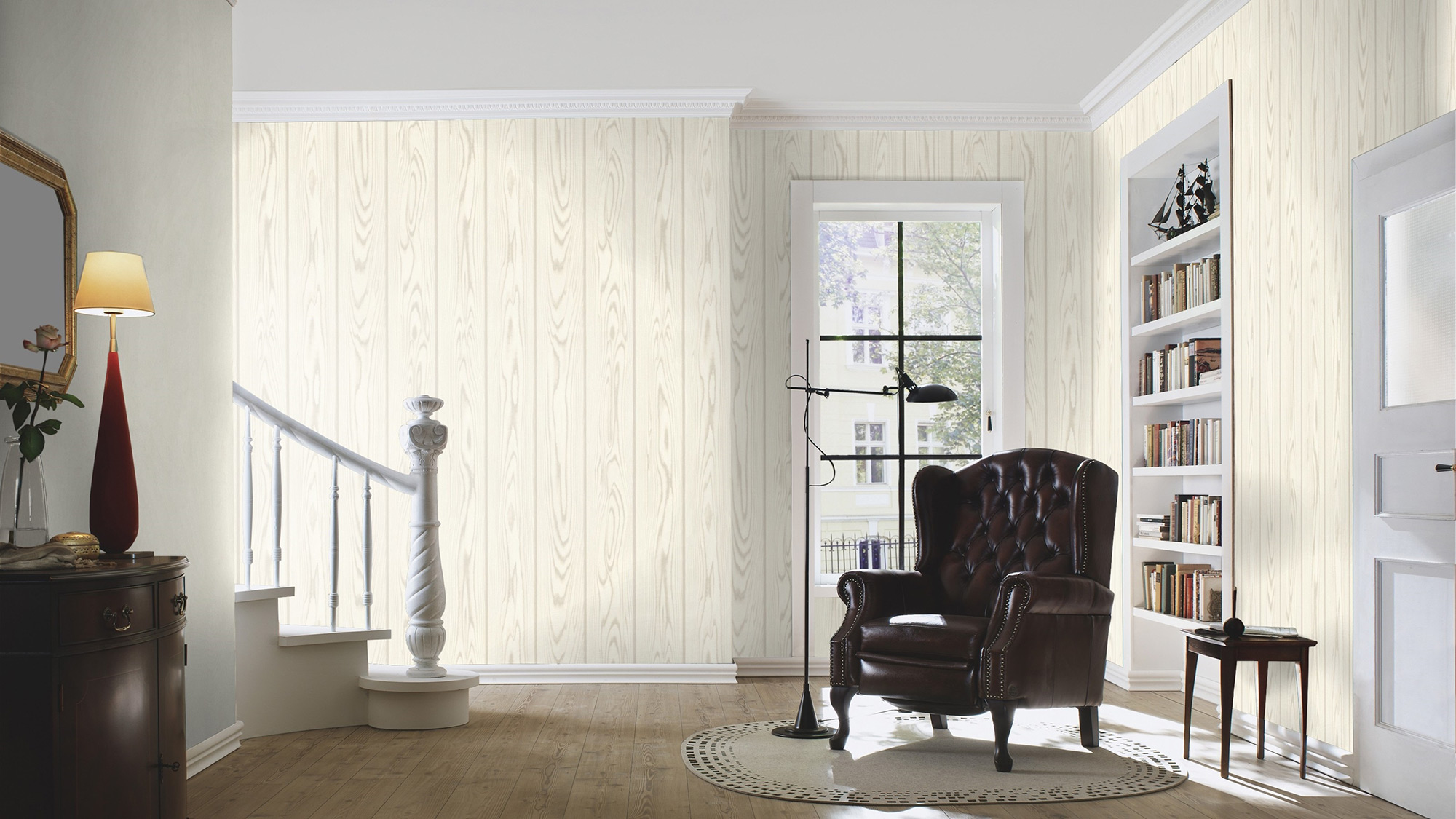 Dank einer traditionellen japanischen Technik in der Holzbearbeitung entstehen diese fantastischen Holzleisten, bei denen die Maserungen besonders zur Geltung kommen. Mit einer feinen, natürlichen Struktur bringt diese Vliestapete in Weiß und Grau sowohl Coolness als auch Gemütlichkeit an jede Wand und wird so zur idealen Kulisse für außergewöhnliche Möbelstücke und Wohnaccessoires.