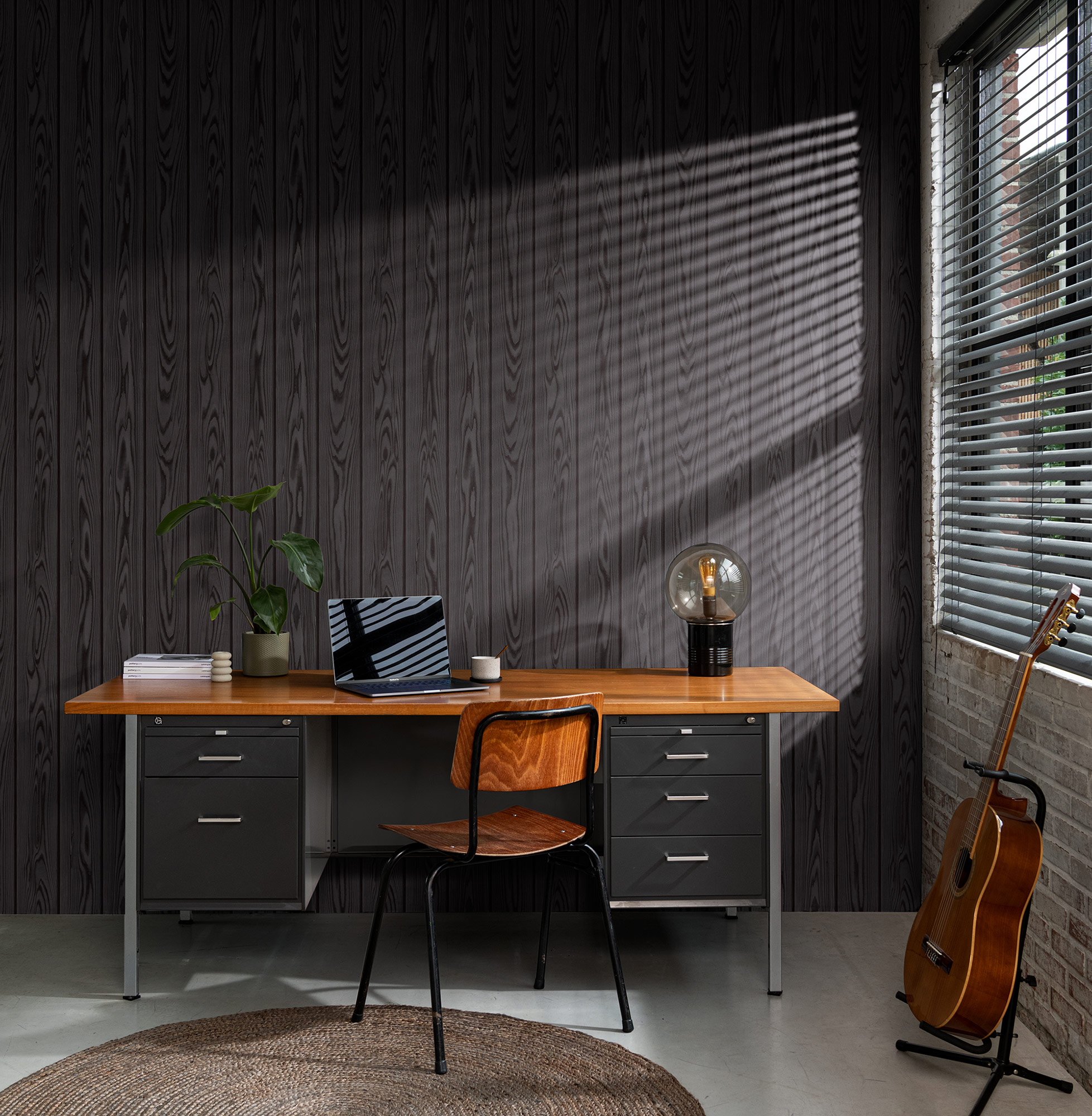 Dank einer traditionellen japanischen Technik in der Holzbearbeitung entstehen diese fantastischen Holzleisten, bei denen die Maserungen besonders zur Geltung kommen. Mit einer feinen, natürlichen Struktur bringt diese Vliestapete in Anthrazit und Schwarz sowohl Coolness als auch Gemütlichkeit an jede Wand und wird so zur idealen Kulisse für außergewöhnliche Möbelstücke und Wohnaccessoires.