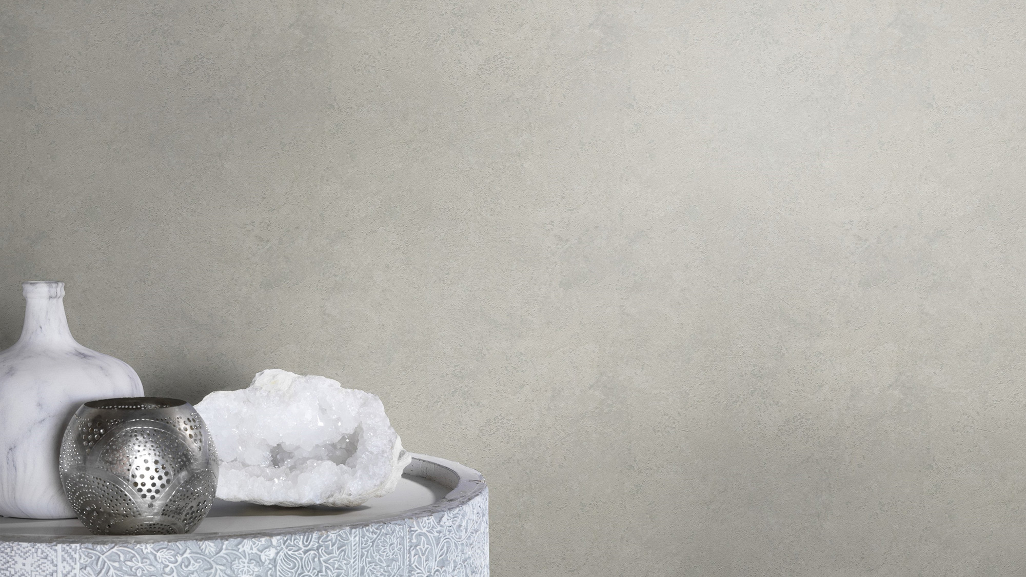 Eine durch Oxidation verrostete Metallplatte war Inspiration für diese Vliestapete. Ein Anstrich in Silber lässt im Nu ein Uni mit einer fantastischen Struktur und Metallic-Effekt entstehen, das perfekt mit vielen Mustern kombiniert werden kann. So holt man sich auf einfachstem Wege den Industrial Look ins Haus.
