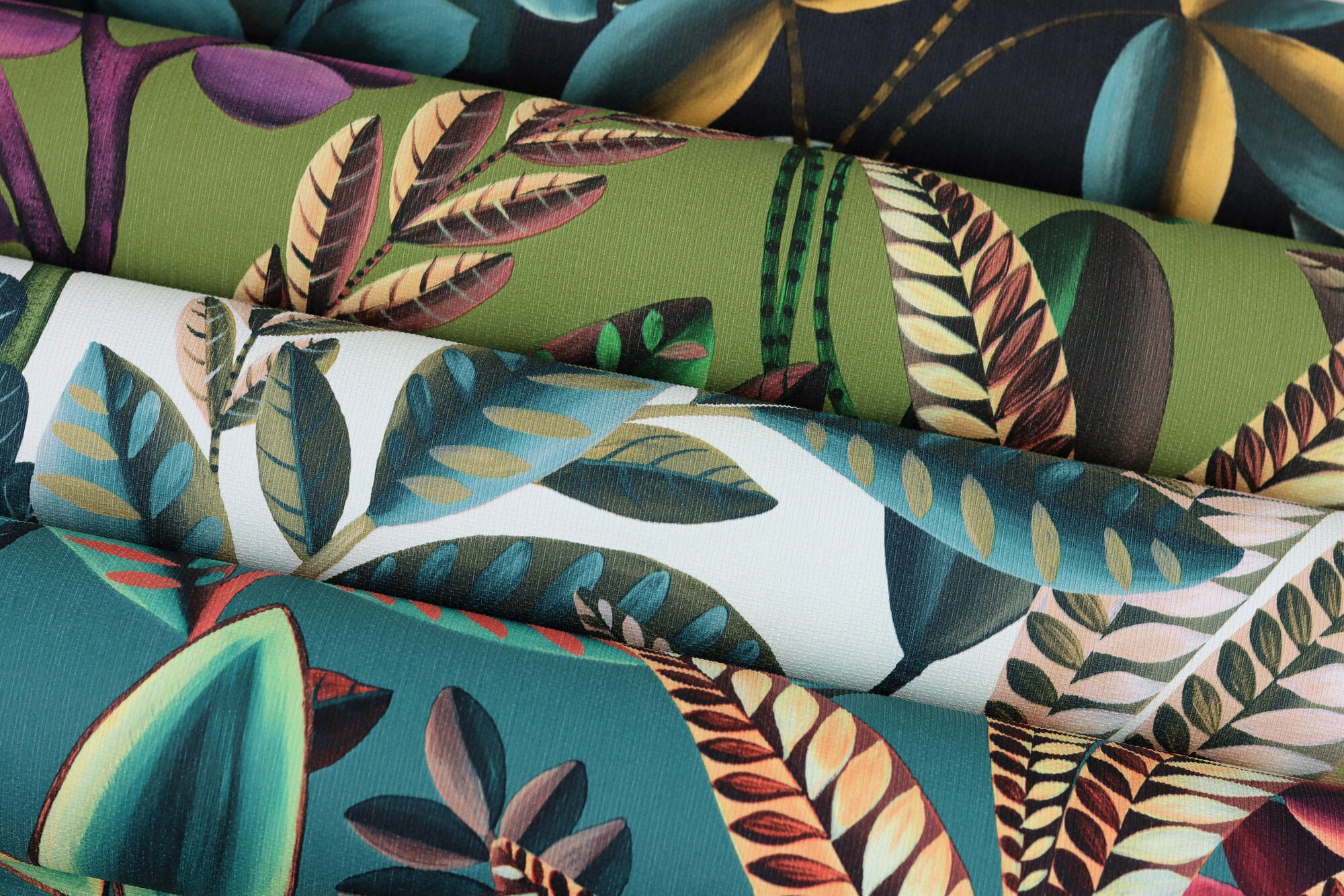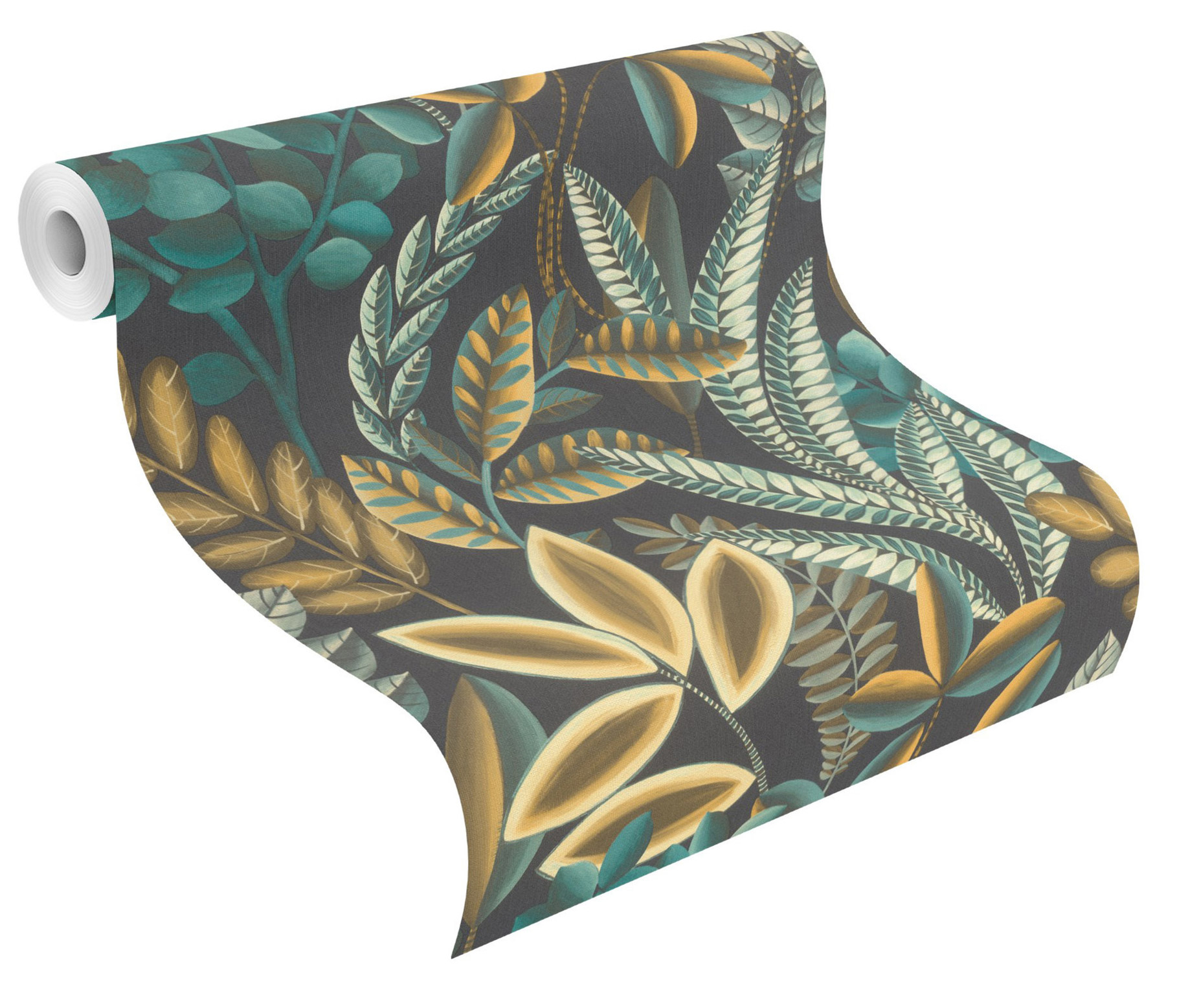 Alice im Wunderland würde sich in jedem Raum mit dieser Mustertapete pudelwohl fühlen. Auf dem schwarzen Hintergrund mit feiner textiler Struktur präsentiert sich eine fantasievolle Pflanzenvielfalt. Die farbenfrohen Gewächse kommen in verschiedenen Farbnuancen von Türkisblau, Himmelblau, Ockergelb, Olivbraun und Blassgelb daher und werden so zum absoluten Hingucker.