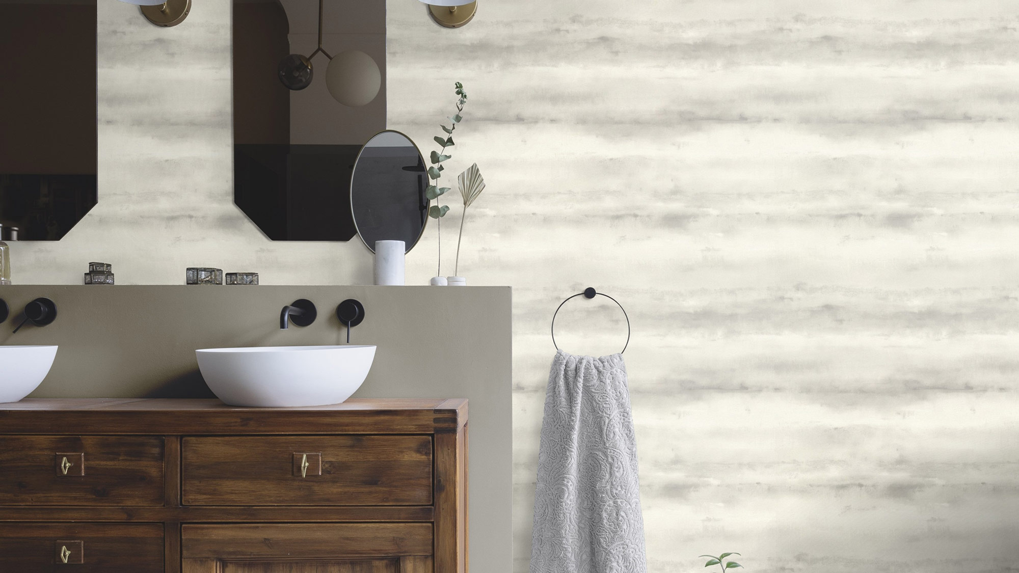 Heavy Metal hat auch eine zarte Seite. Denn der Farbverlauf überrascht und mit feinen Silberakzenten,sodass Räume in ein ganz neues Licht getaucht werden. Dank der Aquarelltechnik gehen die cremeweißen und blassgrauen Nuancen sanft ineinander über und erzeugen dadurch einen leichten Streifenlook. Ideal, um Wände optisch zu vergrößern. Das Design ist natürlich, aber edel ? an Glanz darf es schließlich in keiner Hütte nicht fehlen.