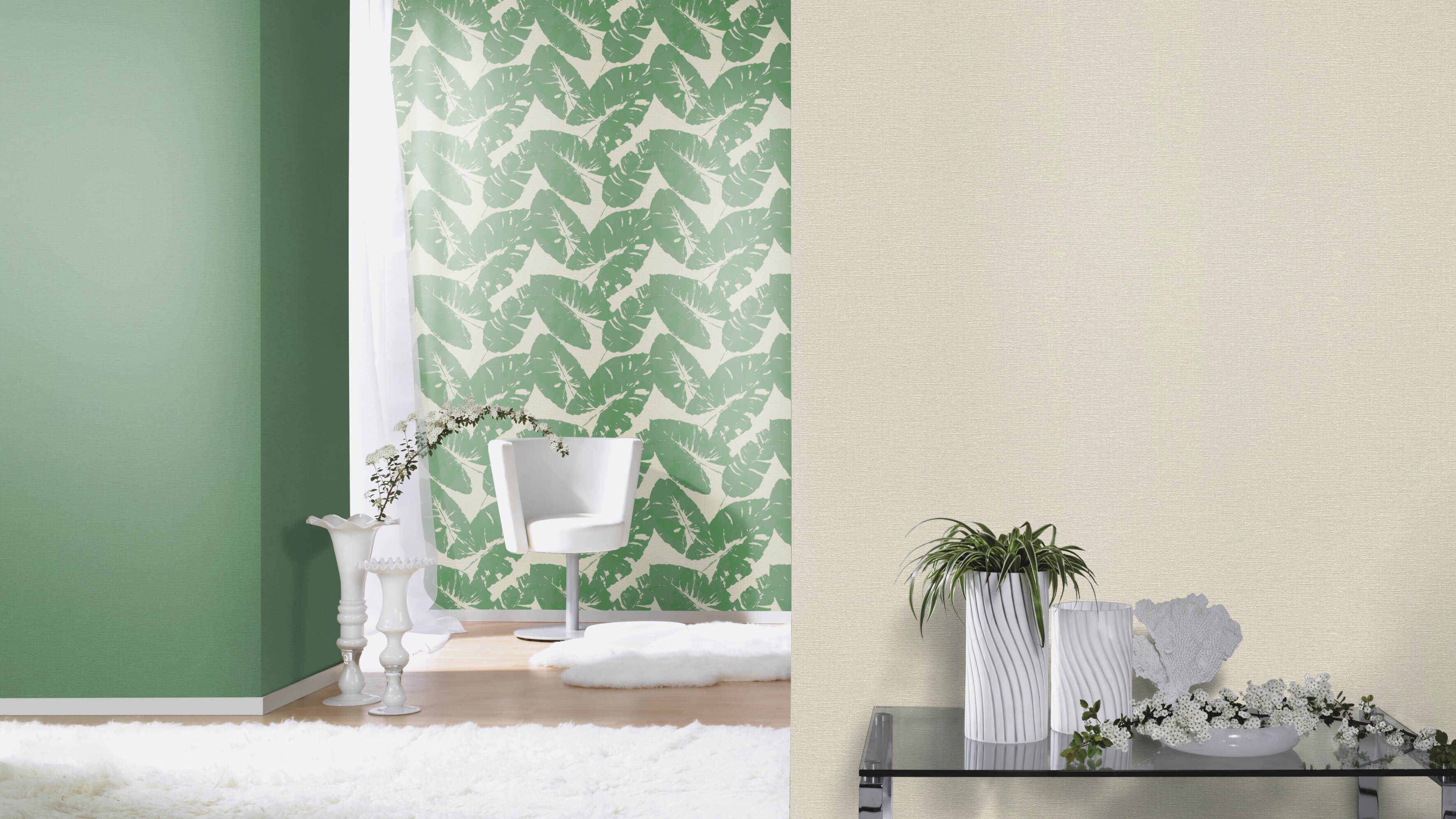 In puncto Wandgestaltung hat sich das Blatt gewendet: Unser Zuhause ist bereit für frische Farbe und großflächige Muster. Gut, dass diese Motivtapete von allem reichlich hat. Sie präsentiert mit viel Stilbewusstsein ein dichtes Blattwerk in Grün, das auf dem beigen Strukturfond toll zur Geltung kommt.