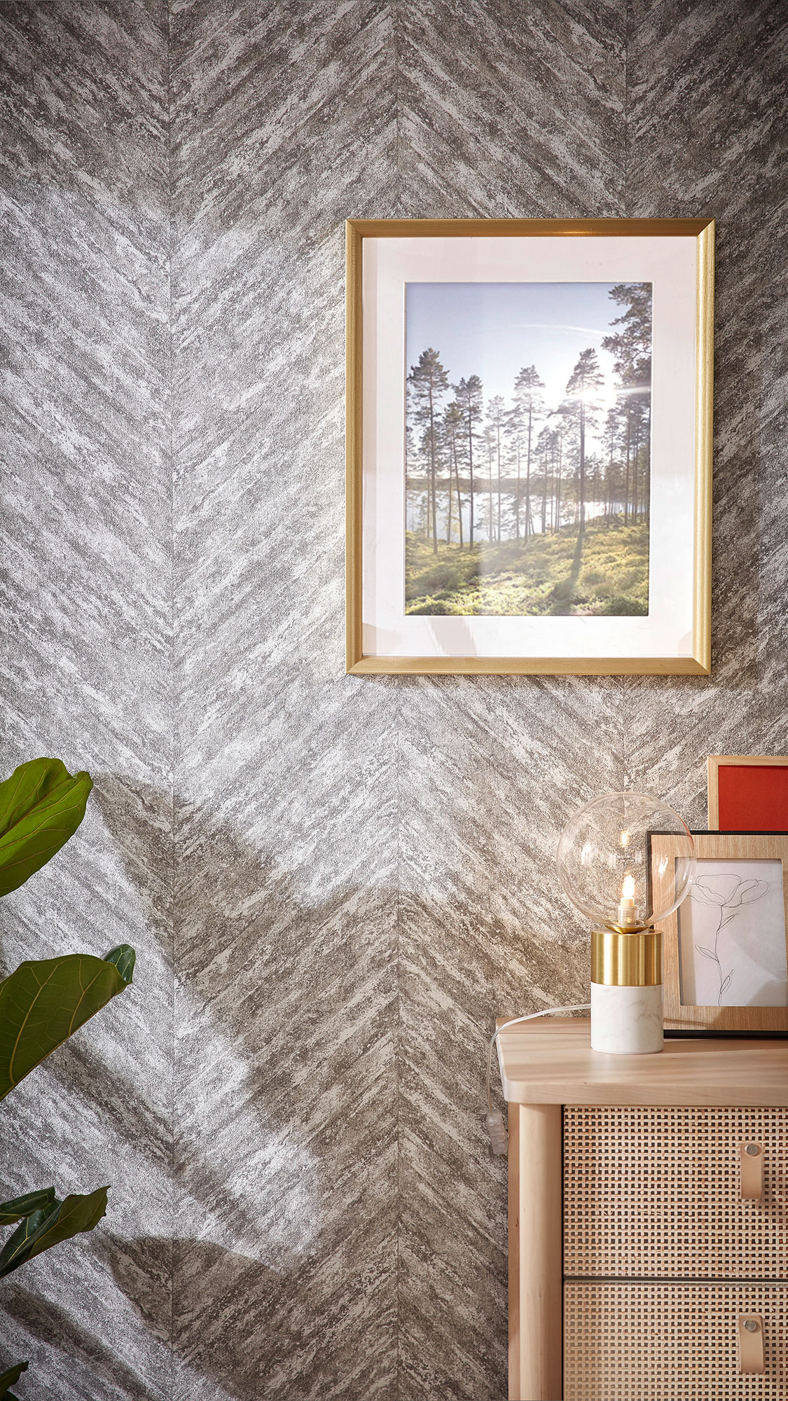 Gradlinig und doch total schräg das sind diese angedeuteten Streifen in Betongrau und Silber. Perfekt wird es mit der schimmernden Optik und der strukturierten Oberfläche. Hach, und jetzt einfach zurücklehnen und den Anblick genießen!