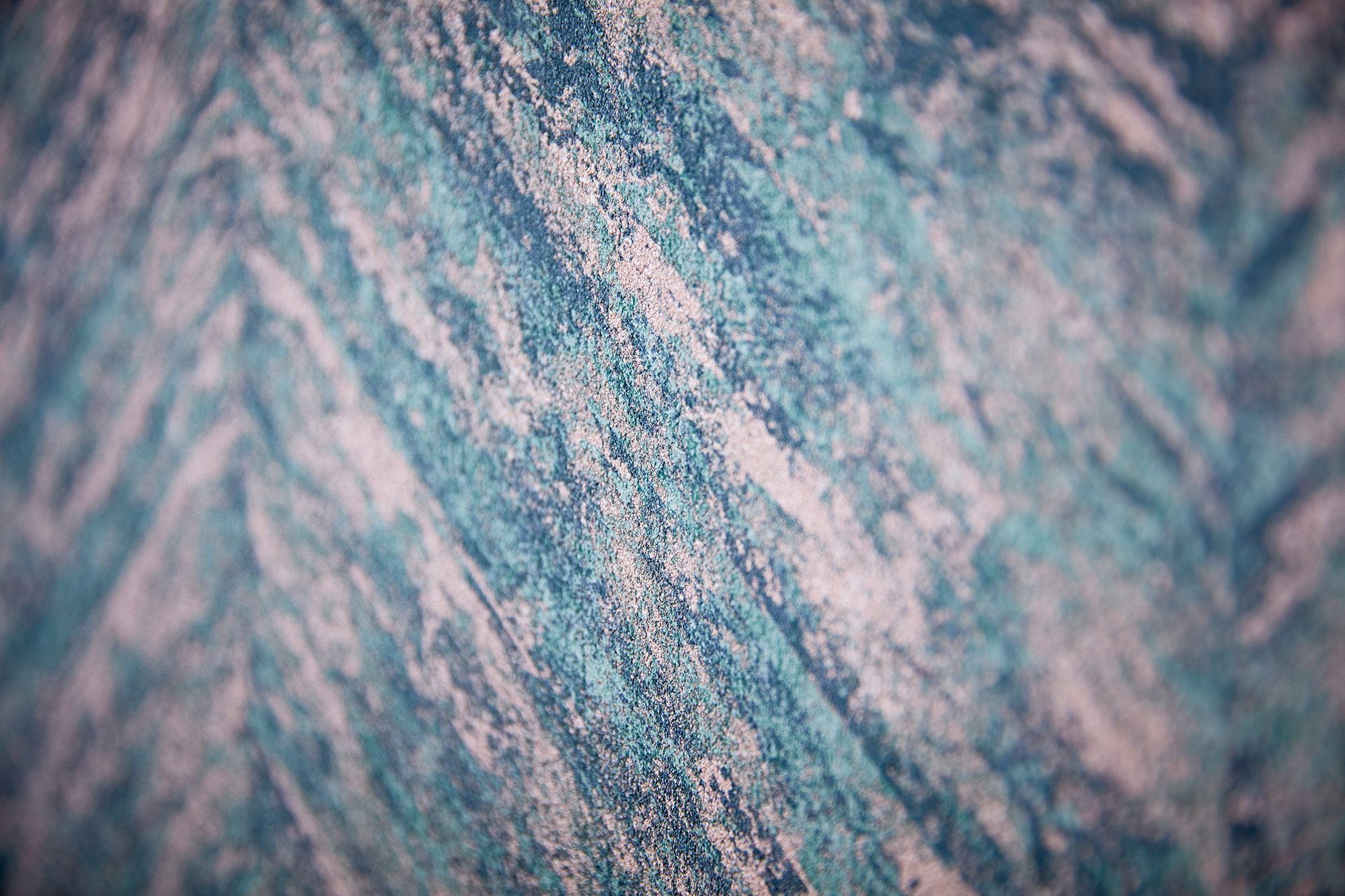 Gradlinig und doch total schräg das sind diese angedeuteten Streifen in Türkis, Nachtblau und Rosamauve. Perfekt wird es mit der schimmernden Optik und der strukturierten Oberfläche. Hach, und jetzt einfach zurücklehnen und den Anblick genießen!