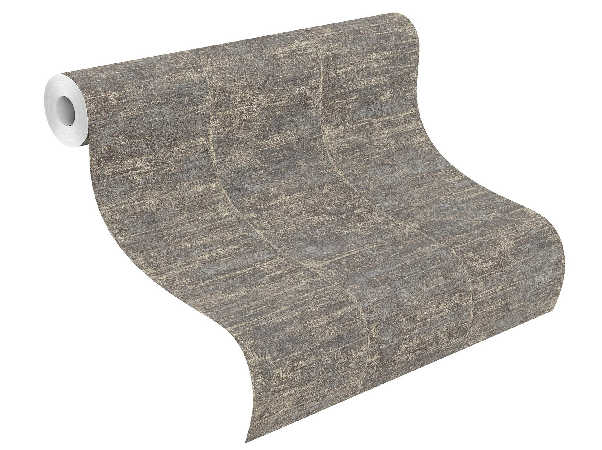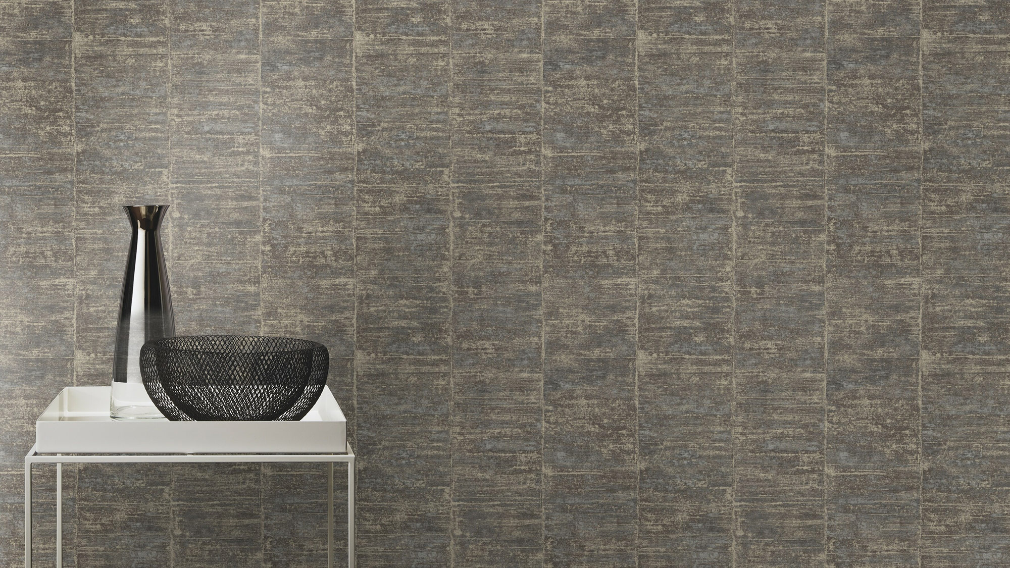 Von oben nach unten und von rechts nach links auf dieser Vliestapete geht es in jede Richtung. Die senkrechten Streifen werden auf dem schimmernden Hintergrund in Gold mit waagerechten Pinselstrichen in Schiefergrau optisch hervorgehoben und verleihen der Wand so eine besondere Note.