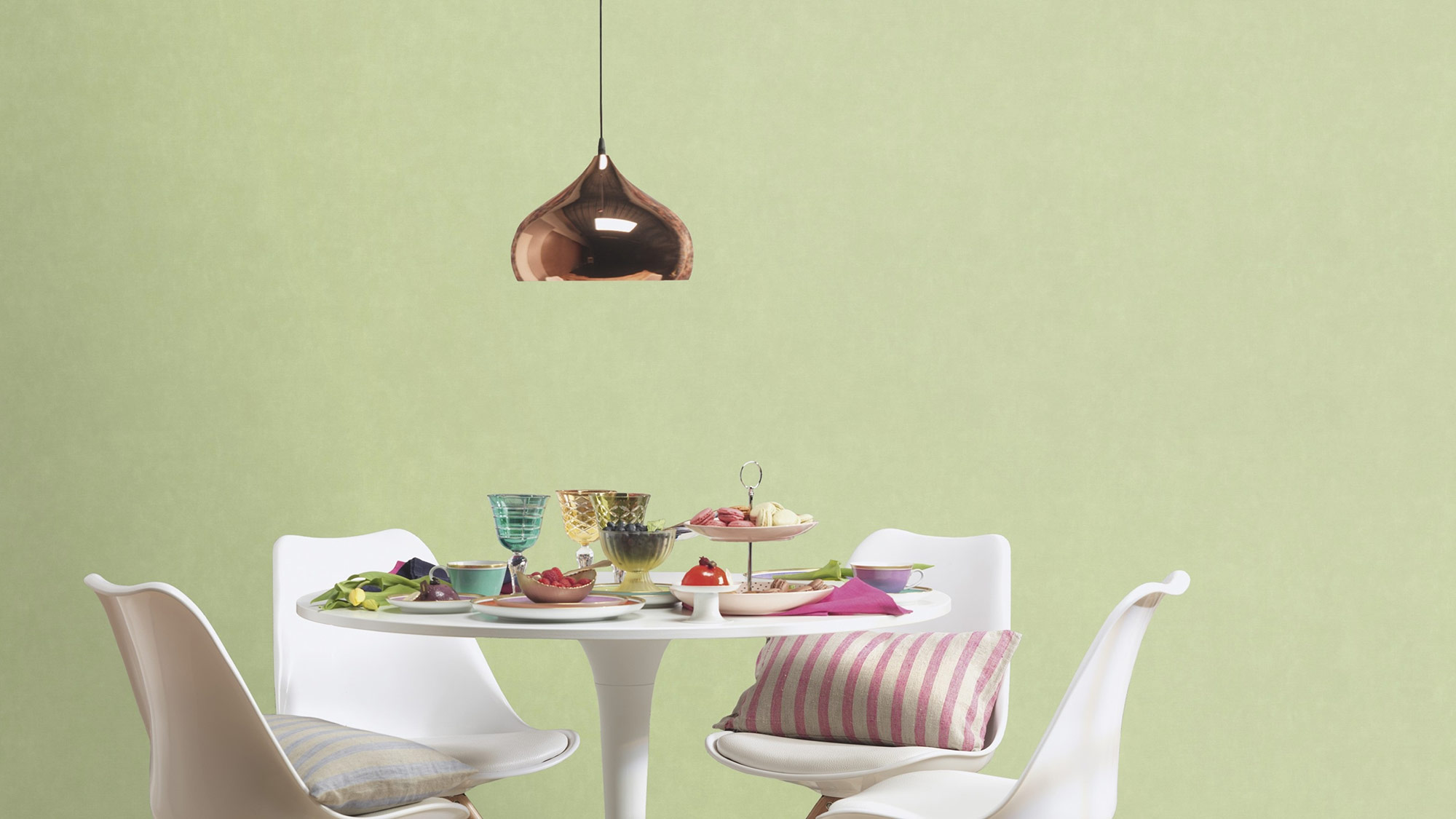 Subtile Raffinesse und künstlerischen Charme vereinbart diese Unitapete geschickt mit der Kombination aus einer feinen Textilstruktur und einem einmaligen Farbauftrag. Die Textiloberfläche lädt dazu ein, mit der Hand über die Wände zu streichen und schafft eine einladende Atmosphäre im Raum. Das frische Hellgrün erzeugt mit einem sanften Versuch Wohlfühlflair und wirkt, als ob es ein Künstler mit Pinsel und Wasserfarbe aufgetragen hätte.