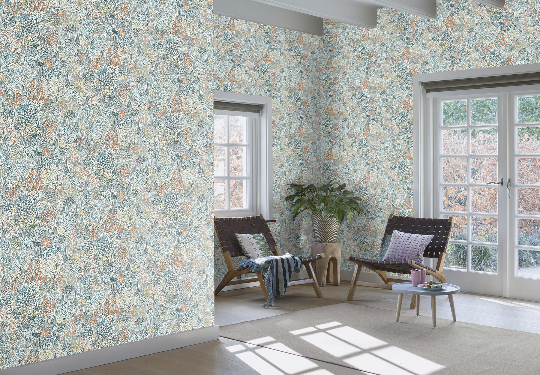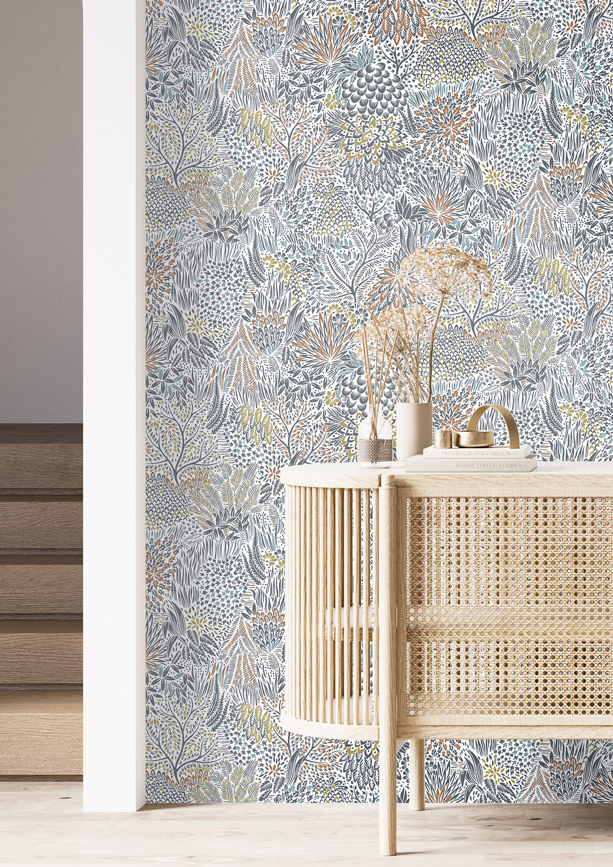 Simsalabim! Und schon steht man mitten in einem traumschönen Zauberwald. Die verspielten Bäume mit ihren faszinierenden Baumkronen und die bezaubernden Büsche und Blumen auf dem weißen Hintergrund mit feiner Struktur lassen einen fantastischen Wandschmuck entstehen. Perfekt wird es durch die gelungene Farbkombination von Mitternachtsblau mit Rostrot, Jeansblau und Grünbraun.