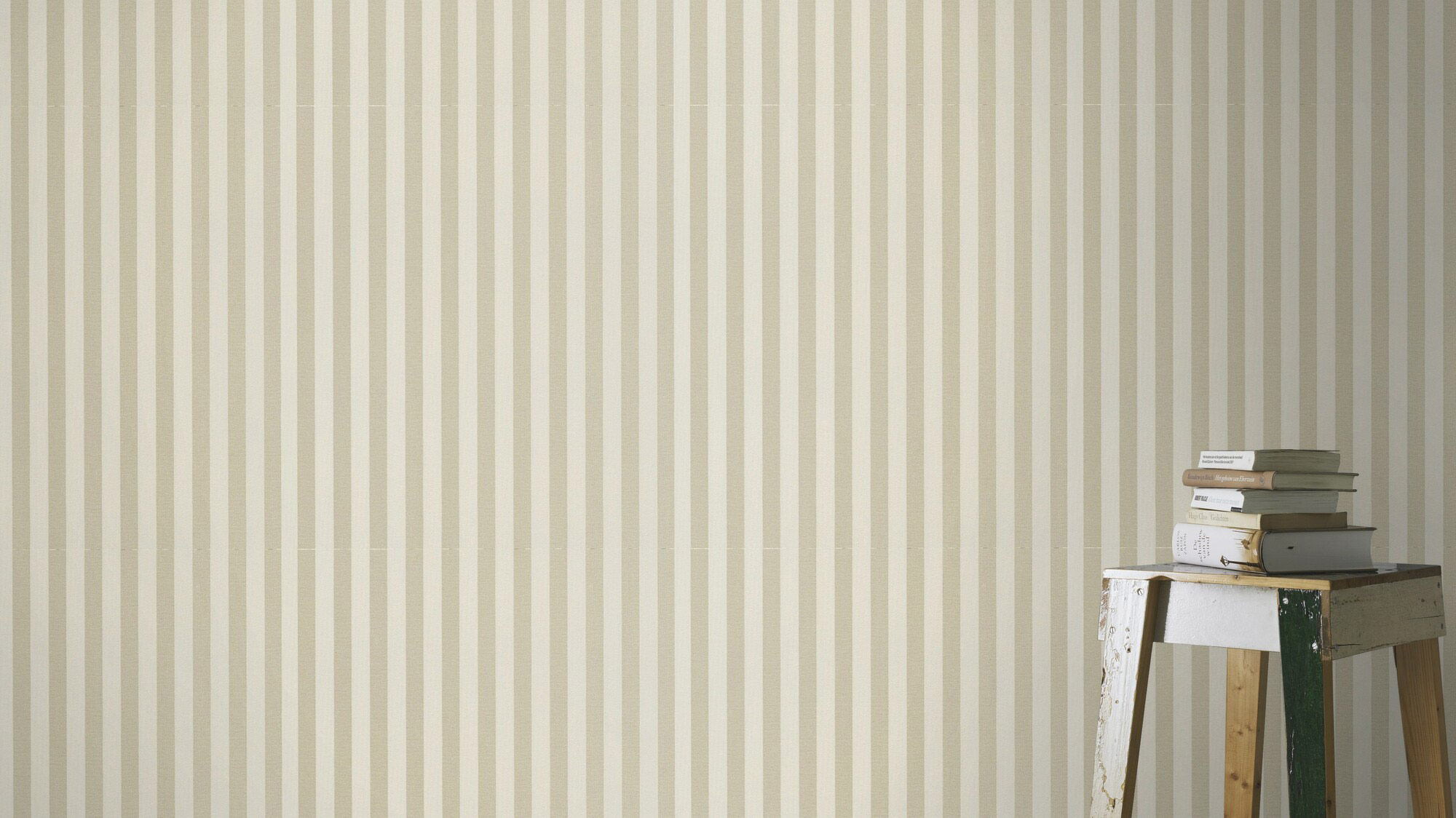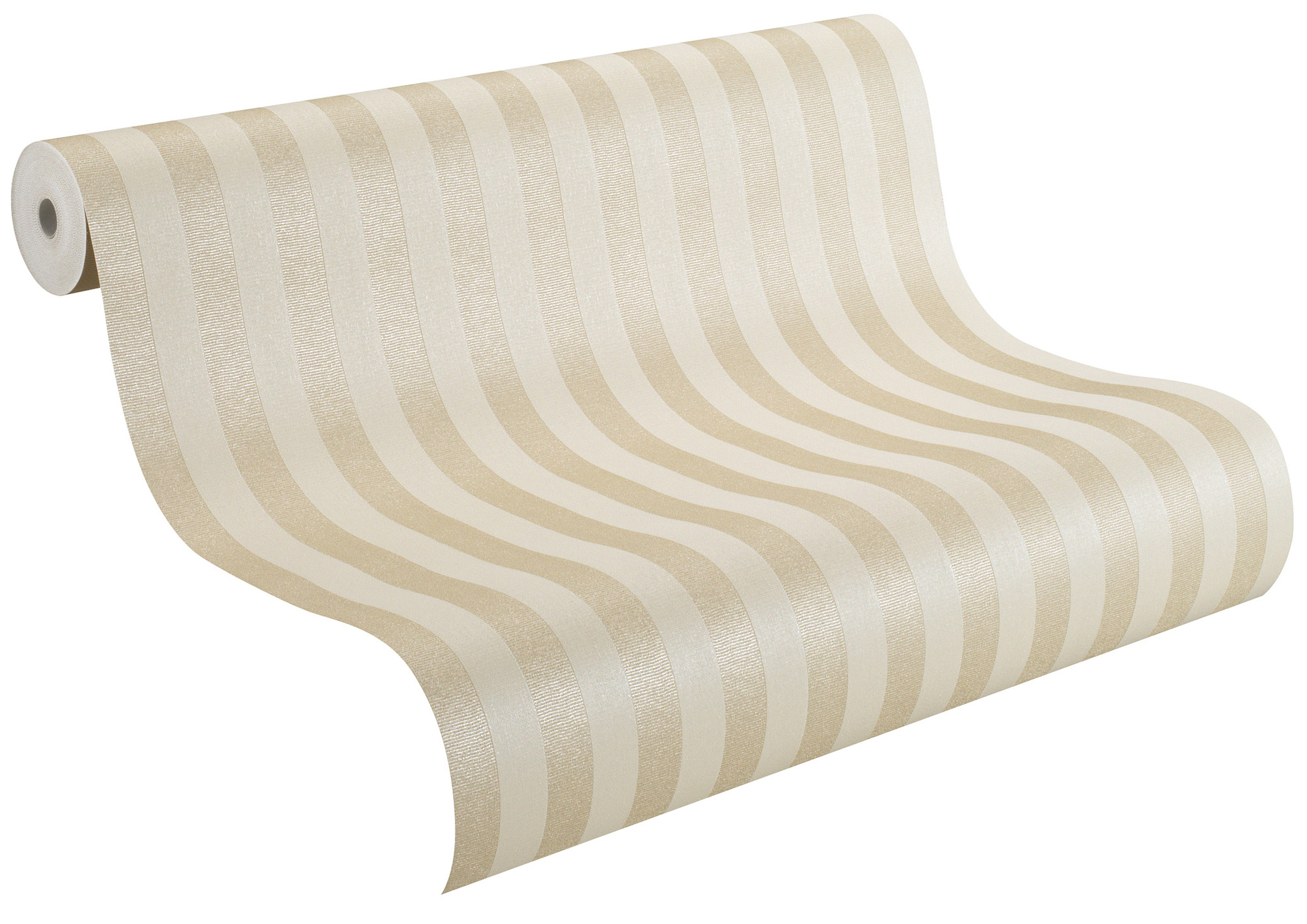 Linientreu zeigt sich das hochwertige Vlies mit den schlanken Streifen und holt in goldenem Sand und hellem Creme mit feiner Stoffoptik im Handumdrehen ein wenig royalen Chic ins Haus.