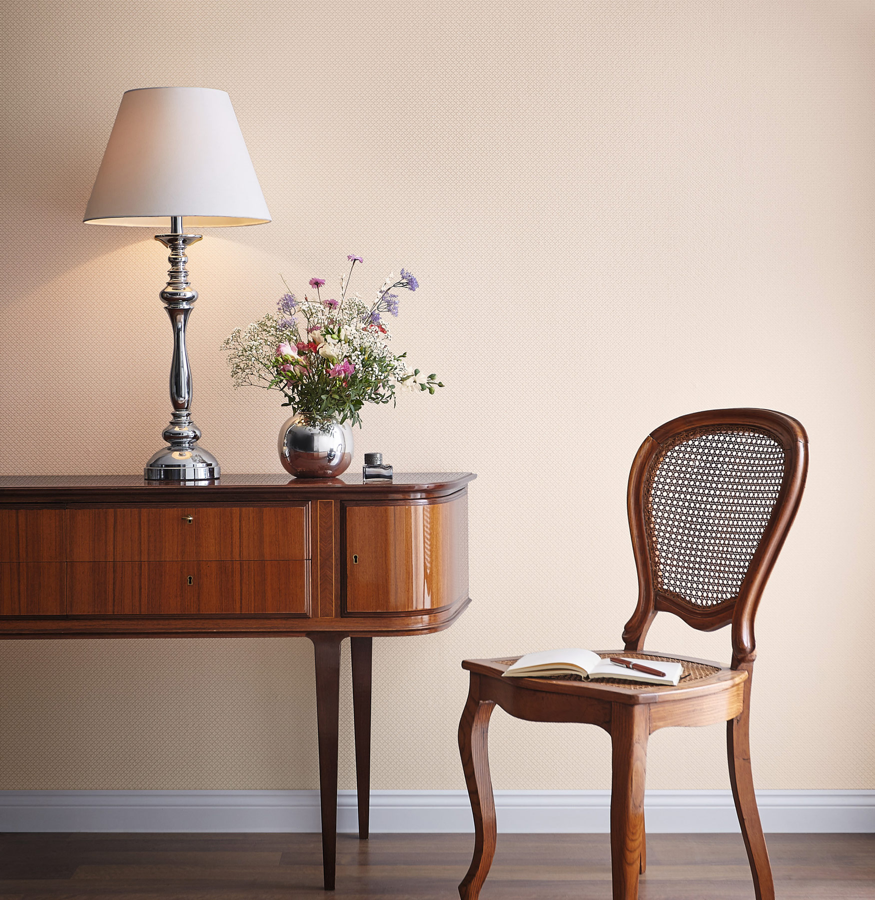 Feine Sache: Zart und filigran erscheint das Tapetenmuster, das sich an jeder Wand schnell zuhause fühlt. Durch den pastellrosa Stoff und die Stickerei wirkt das Design wohnlich, aber zeitlos elegant. Eine Tapete, die viel Gestaltungsfreiraum mitbringt und die man auch nach Jahren noch gerne um sich hat.