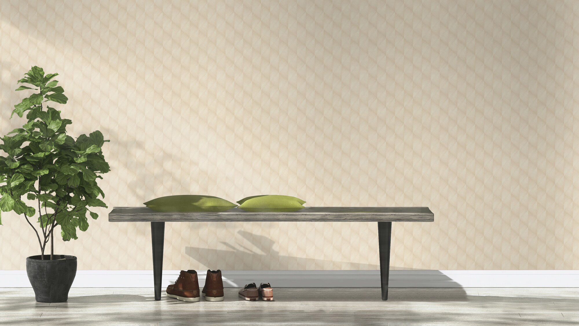 Bambus hoch drei: Mit seiner 3-D-Optik hinterlässt das grafische Muster mit der feinen Bambusstruktur einen edlen Eindruck an Wohn- und Schlafzimmerwänden. Changierendes Puder unterstreicht die Wirkung und spielt gekonnt mit Licht und Schatten. Das macht den Raum lebendig, aber es bleibt dennoch alles schön in seiner Form.