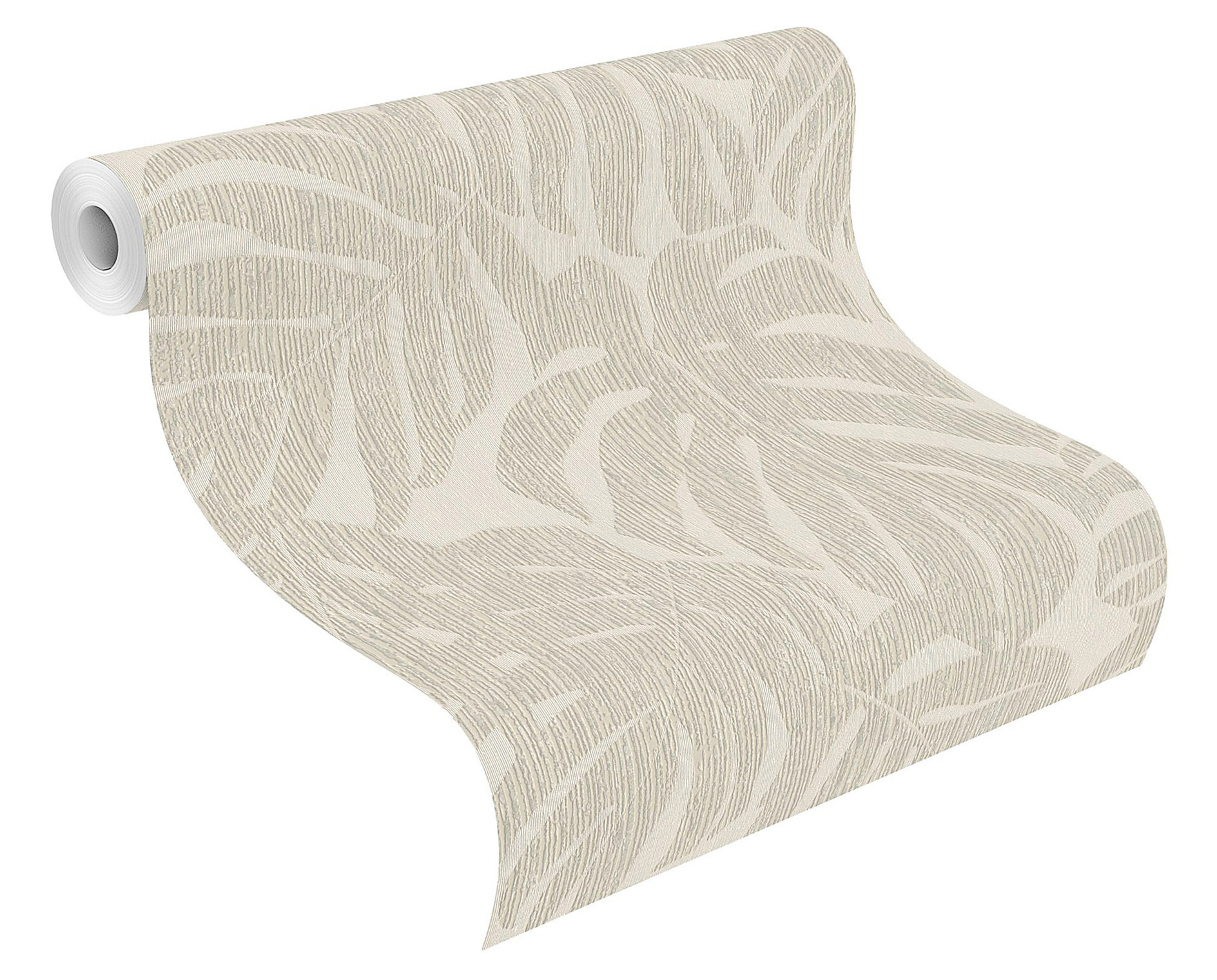 Exotische Blattmotive dürfen ab sofort auch an den Wänden wuchern. Mit viel Stilbewusstsein präsentiert sich auf dieser Mustertapete ein dichtes Blattwerk in Graubeige mit einer auffälligen Linienstruktur. So kommen die Blätter auf dem cremeweißen Hintergrund mit der im Gegensatz sehr feinen geriffelten Struktur besonders gut zur Geltung.