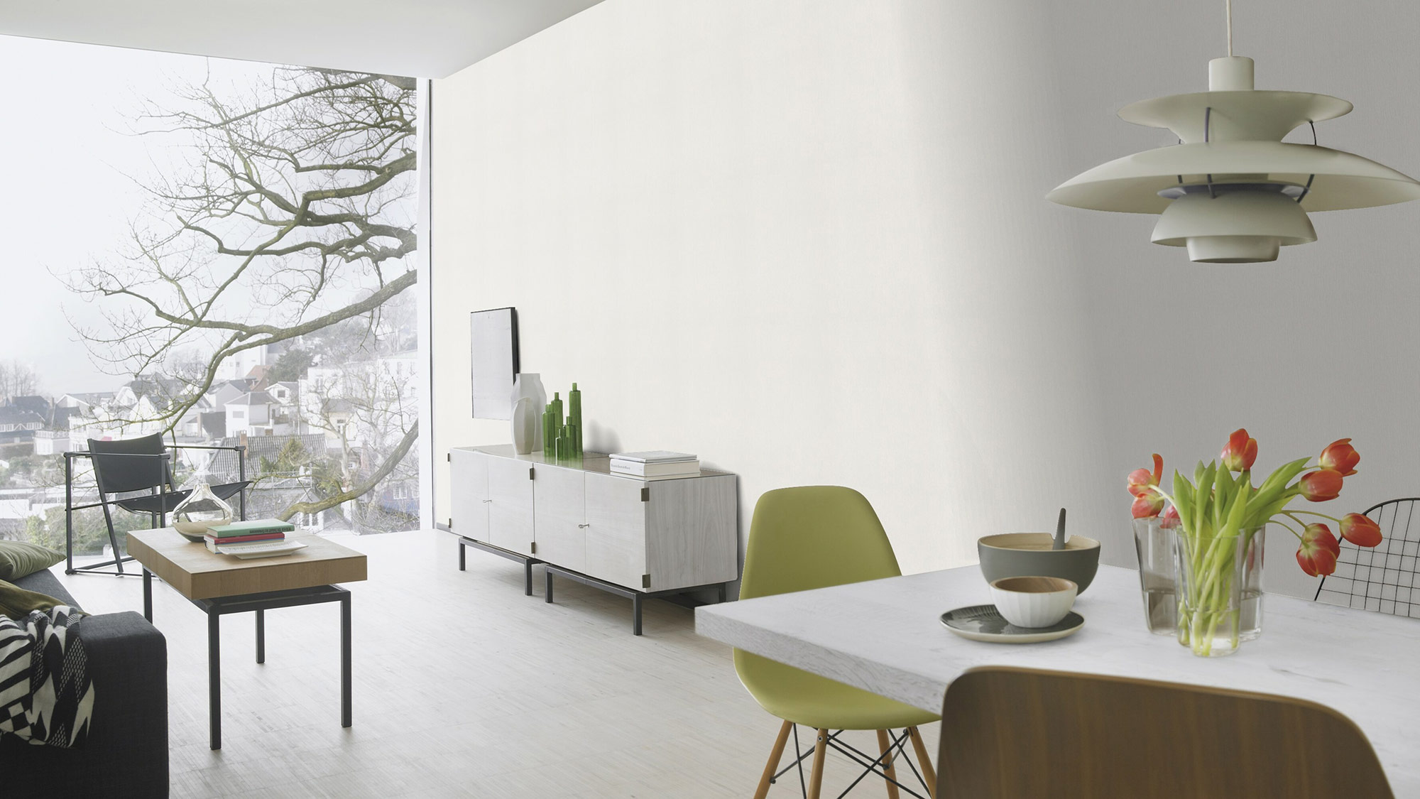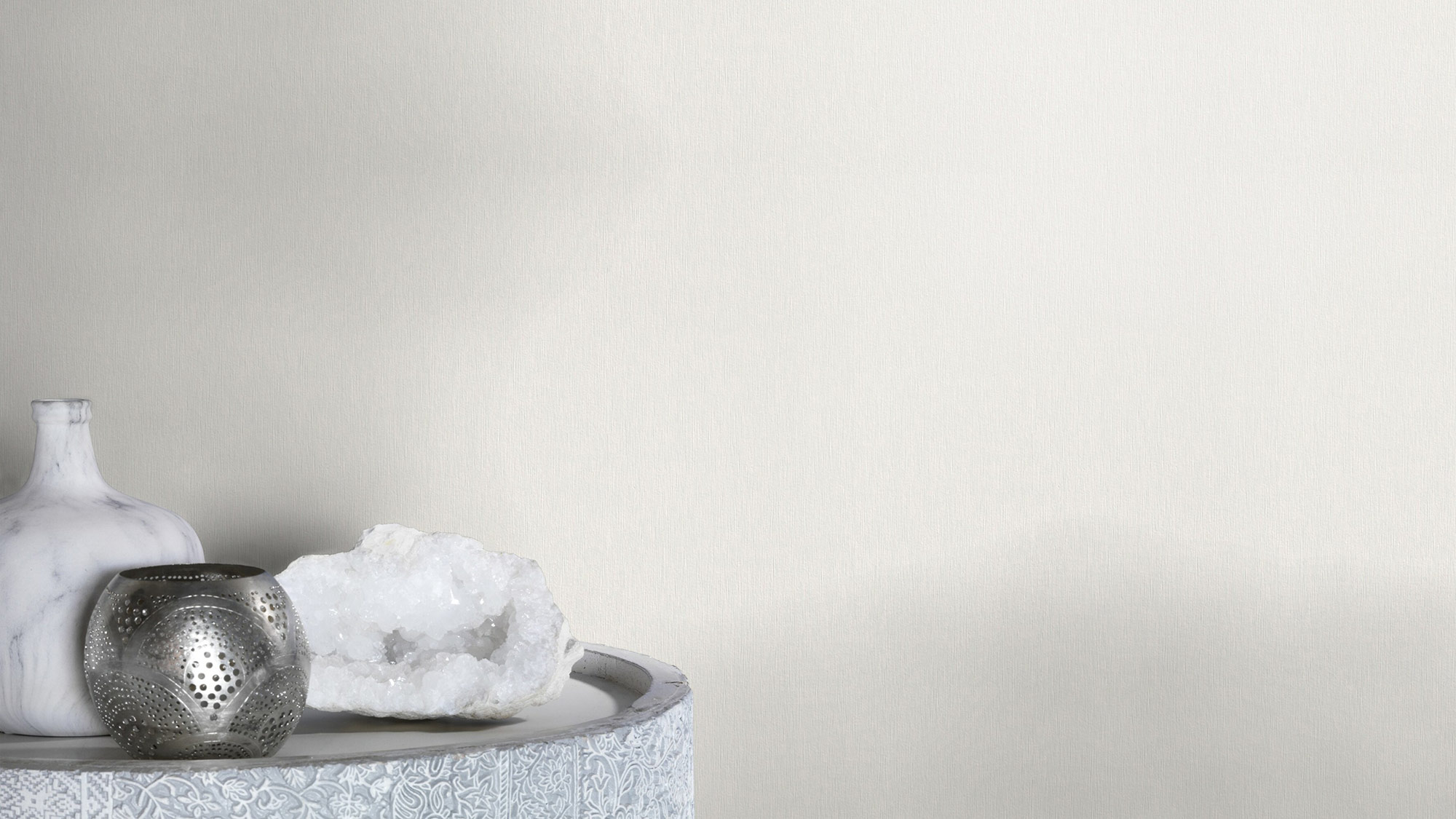 Ein weißes Uni, das durch seine fein geriffelte Struktur besticht. Diese interessante Prägung wirkt wie ein textiler Fond, der jede Wand nicht nur in einheitliche Farbe, sondern in sattes Leben taucht.